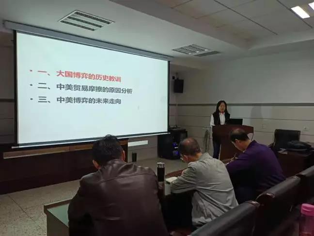 为了更好的了解当今时事以及对历史进行回顾与展望,公司马克思主义公司的杨慧敏老师于10月24日下午3:00,在生科楼419讲授了关于“中美贸易摩擦的回顾与展望”的主题讲座。公司党委马强书记、副书记副经理杨忠仁 、副经理周洪友 、副经理刘杰才以及全体教职工参加本次讲座。