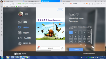 《昆虫分类学》是一门专业拓展限选课程,2学时/周;《农业昆虫学》是一门专业拓展必修课程,6学时/周。课程采用雨课堂平台(PC端和手机端小程序)方式在线授课。雨课堂课平台用以呈现课程材料、布置课程作业;课堂中通过弹幕、投稿、随机点名、白板、荧光笔、“不懂”标注等实现师生互动答疑。