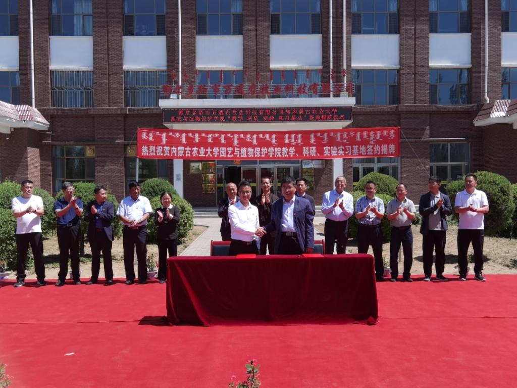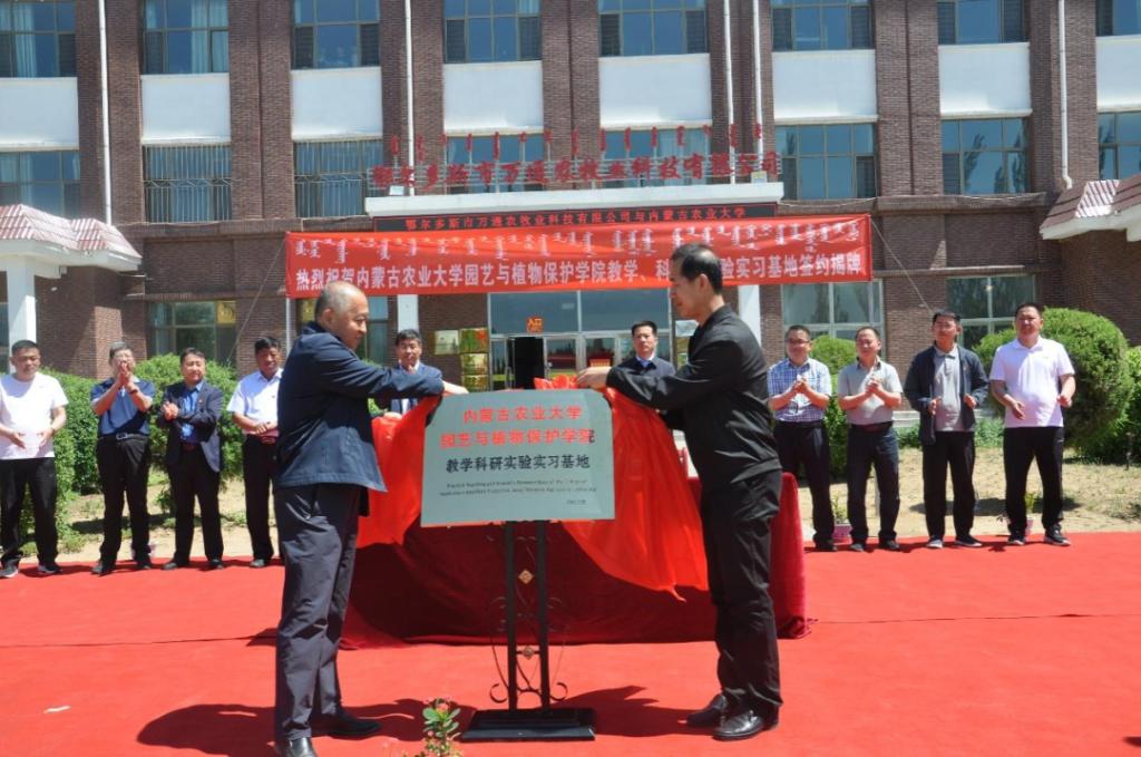 6月5日,三亿体育与鄂尔多斯市万通农牧业科技有限公司共同建立的植物保护公司教学、科研、实验实习基地签约揭牌仪式隆重举行举行。三亿体育经理周洪友、副经理刘杰才、行政办公室主任孟焕文,万通农牧业科技有限公司孙瑞峰总经理、狄成祥副经理以及白泥井镇领导干部参加了揭牌仪式。揭牌仪式后刘杰才副经理同孙瑞峰总经理签订了长期合作协议。周洪友经理在仪式后发表了关于“产学研相结合促进乡村振兴”的重要讲话。仪式后狄成祥经理带领乡镇领导及三亿师生参观了公司种植园区。