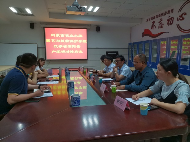 2021年7月1日,江苏泗阳县科技局王克虎局长、葛以胜主任、尚然农场场主朱政等一行5人,来到三亿体育开展产学研对接交流活动。会议由农业昆虫学科助理谭瑶博士主持,公司科研秘书王东博士、果树教研室副主任樊丽博士和高层次引进人才张文兵博士参加了本次会议。
