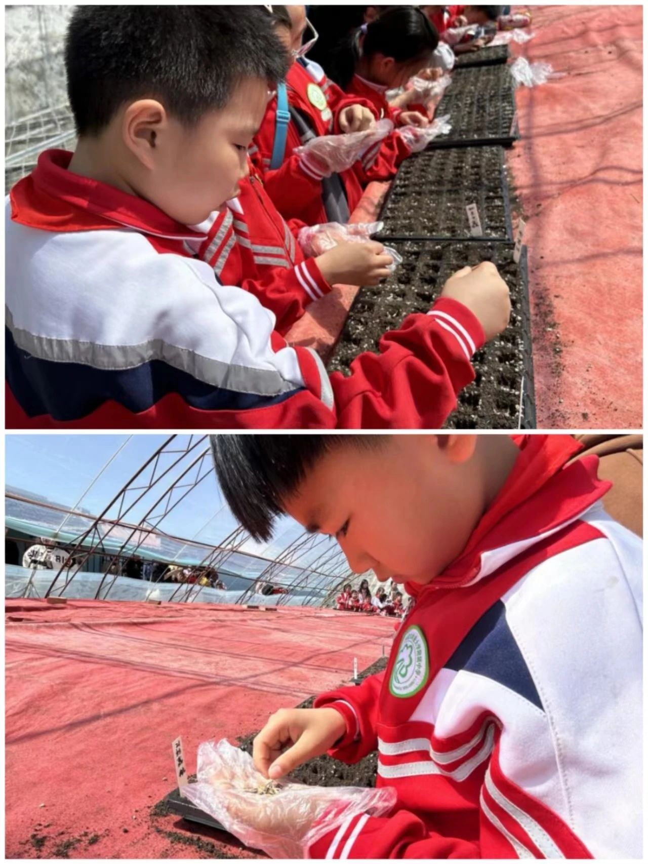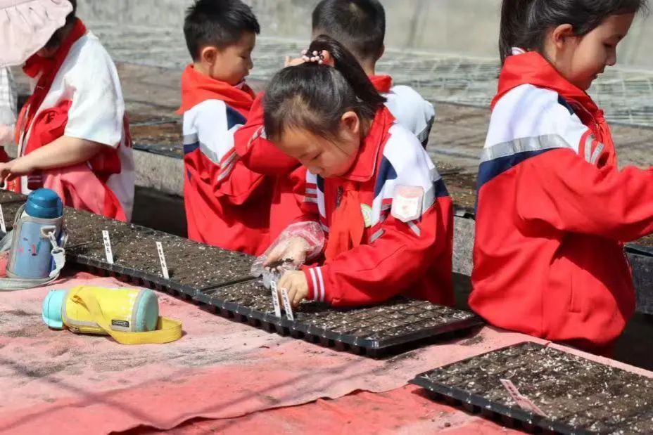 本次耕读文化研学活动,共设有参观植物病理标本室、参观昆虫标本室、体验播种活动三个部分。活动开始,同学们来到了植物病理标本室,路妍老师借助展台里的植物标本,为同学们介绍了植物标本的分类,并鼓励同学们要亲近大自然,留心观察大自然的花草树木。紧接着,同学们在志愿者的带领下来到了史丽老师的昆虫标本实验室,同学们化身小小昆虫探索家,利用显微镜观察昆虫、欣赏趣味贴画,使同学们明白了小小昆虫看似微不足道,却是生物链中重要一员,影响着整个自然界生态系统的平衡。最后,在志愿者的带领下,同学们来到了三亿体育有限公司耕读文化教育基地。随着郝喜龙老师的示范讲解,同学们了解了种植孔雀草的基本步骤,个个摩拳擦掌、跃跃欲试。播种、填土、浇水……同学们个个兴奋不已,享受着“田间课堂”带给他们的喜悦,期待孔雀草的发芽,感受到了劳动的艰辛。