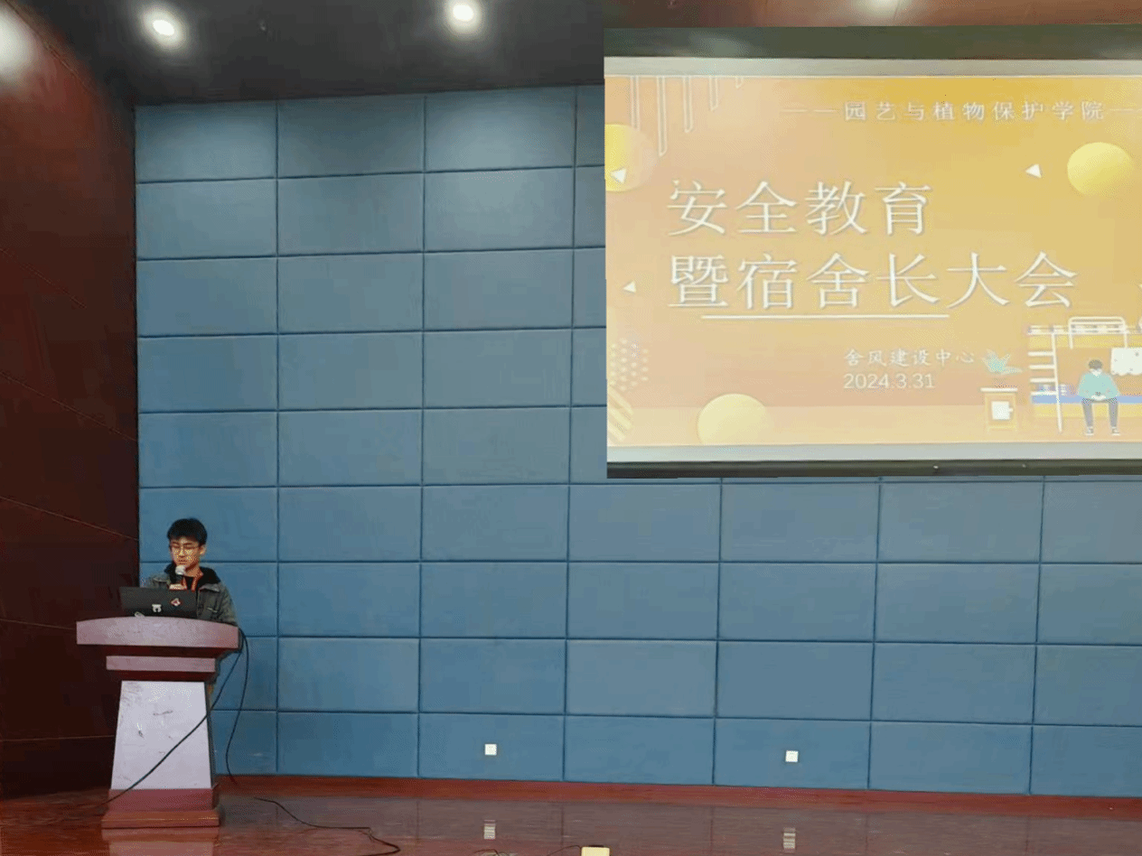 为进一步加强安全意识,增强宿舍长的责任担当,3月31日上午,公司在生科楼二楼报告厅开展安全教育暨宿舍长大会。会议由辅导员尚飞主持,公司舍风建设中心成员和全体宿舍长出席。