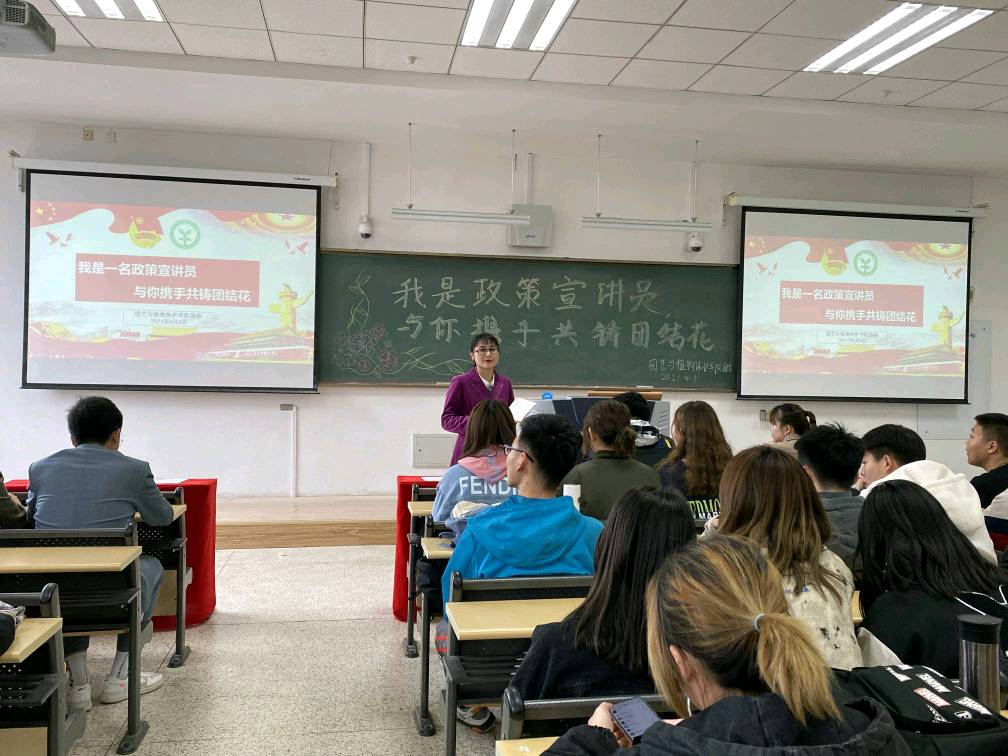 让同学们全面了解三科统编教材,使用三科教材有利于更好地强化国家意志、贯彻党的教育方针、践行社会主义核心价值观、全面深入落实立德树人根本任务。4月1日下午2:30,公司在新区南教118举办“我是一名政策宣讲员,与你携手共筑团结花”主题演讲比赛,团委老师郝凤英、辅导员韩凯如、分团委员工干部以及各班班委参加此次活动。