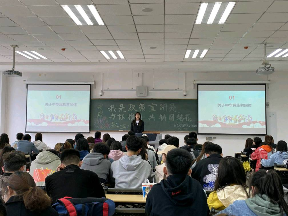 在组织部张晓昂介绍完活动的注意事项后,各班级宣讲员按照抽签的顺序有序的上台。每位选手围绕‘三科统编教材’,聚焦于‘民族团结’,选手宣讲语言活泼,结语气势恢宏,选题新颖,博得台下评委和观众的热烈掌声。19园艺二班的宣讲者樊婷在比赛中为同学们讲述了什么是三科统编教材以及学习三科统编教材的意义,利用生动的小故事,借助舒缓的音乐,同学们从她的演讲中受益匪浅。最后,郝凤英老师做出总结,希望同学们保持初心,有责任感,能从自身做起加固对铸牢中华民族共同体意识,后期将打造一支由此次参赛选手组成的民族政策宣讲团,走进各个团支部,加深同学间的凝聚力,激发大家对中华民族更深层次的了解。在场人员在齐唱《光荣啊,中国共青团》中落下帷幕。