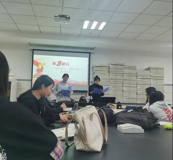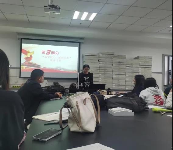 主持人赵妍同学以习近平总书记“七一”讲话的视频作为本次活动的开场,带领大家共同学习了党的百年历史,更加坚定了同学们要为实现中华民族伟大复兴贡献出青春力量的决心。活动中,同学们纷纷表达自己的感想。何肖石同学谈到:“‘请党放心,强国有我’,我要把这份庄重的誓言铭记于心,化作我砥砺前行的动力。终有一天,我定会见到那满船清梦,满目星河。”随后,赵玲与陈艳赫同学为同学们带来的演讲令人激动人心,使全班同学重温了“请党放心,强国有我”的铮铮誓言。活动最后,班主任李艳艳老师表示:同学们可以积极参加活动并发现自身优势,并对同学们未来考研及就业问题做了详细的解答。
