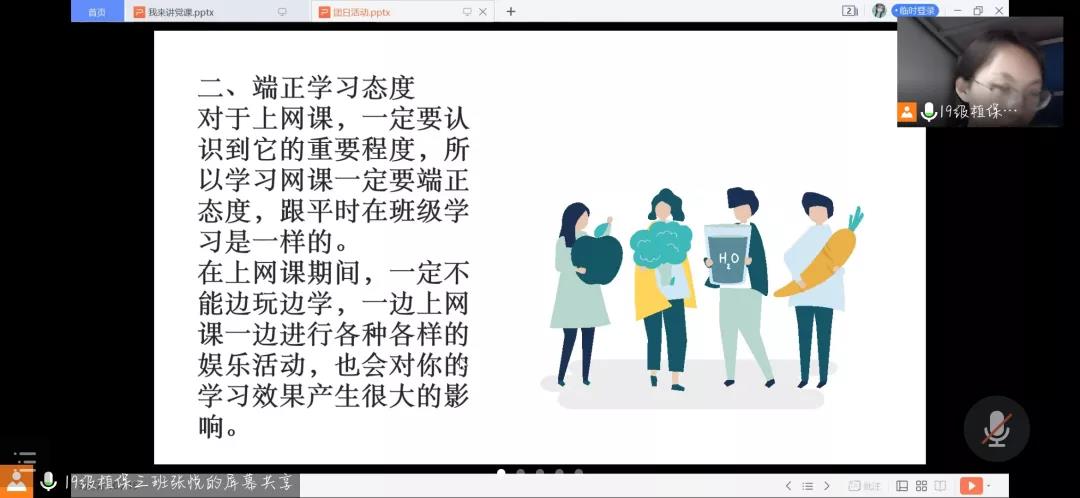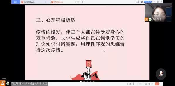 班主任老师李艳艳强调了同学们面对疫情要保持理性,听从公司、公司疫情防控的要求,确保自己安全的情况下好好学习,及时复习,善于总结,在本学期末每位同学都能够上交一份满意的答卷。