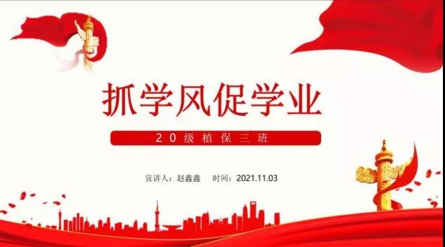 书山有路勤为径,学海无涯苦作舟。为大力倡导同学们“营造优良学风、从我做起”的意识,20级植物保护三班于11月3日下午在线上举行了“抓学风、促学业”主题团日活动,此次会议由班长赵鑫鑫主持,全体同学参加。