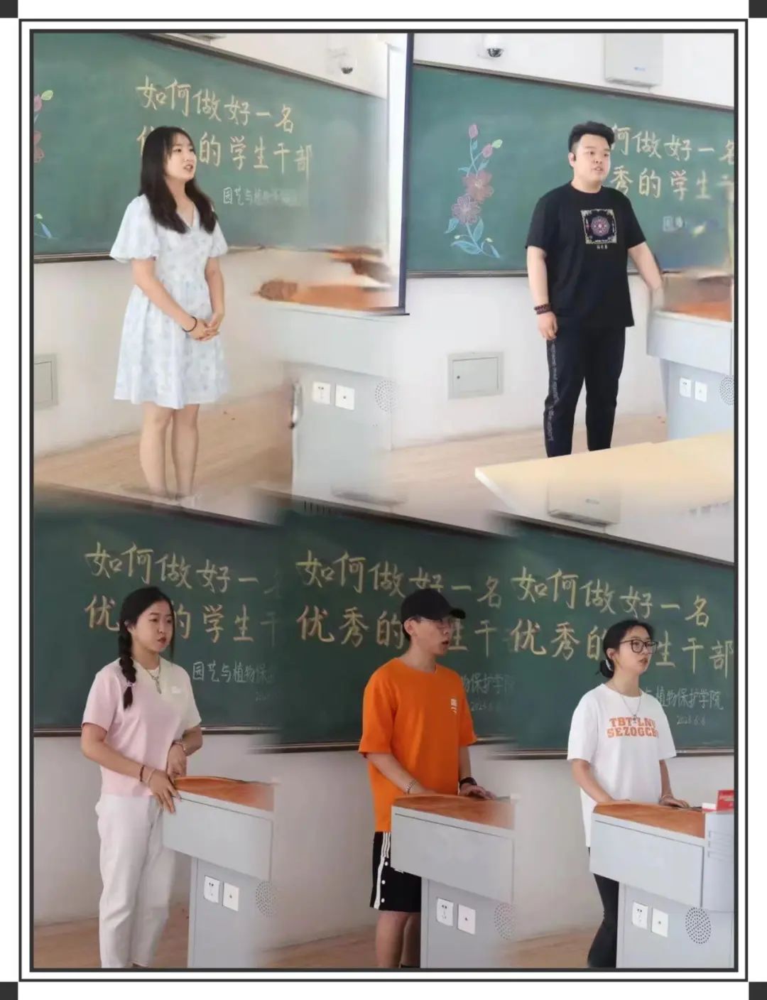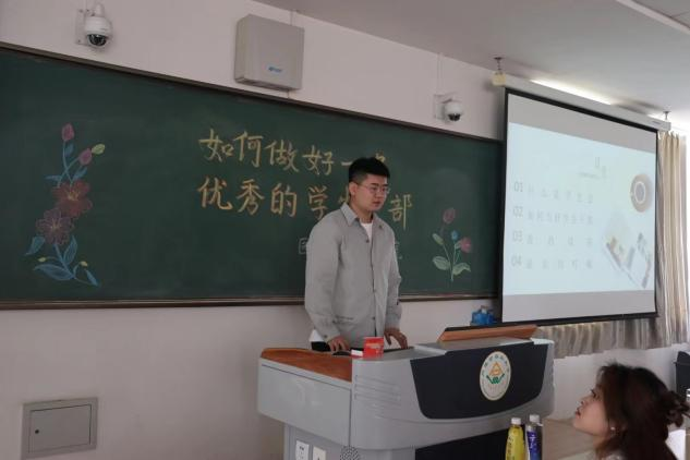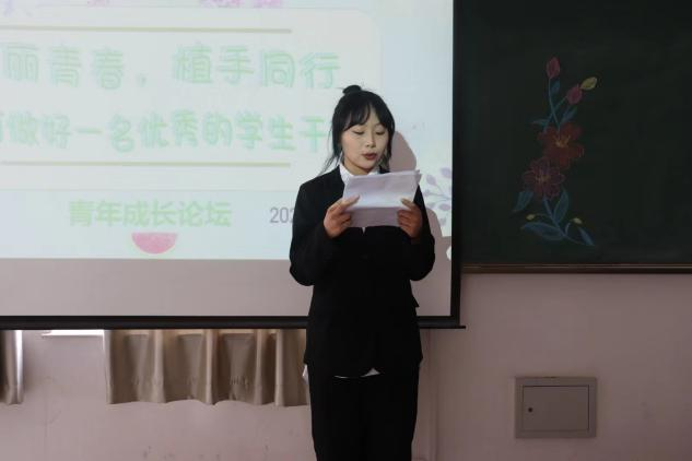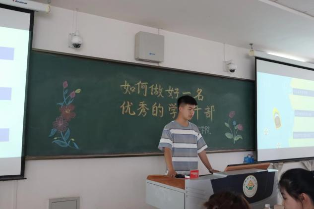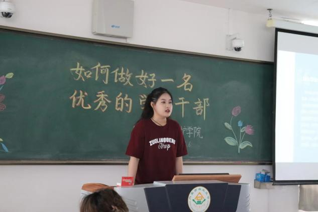卢文婷同学则通过自身的工作经验,指出做任何事都是始于初心,成于坚守,教导大家做任何事都要有始有终,不半途而废。通过自己在工作中遇到的问题,讲述了心路历程,提醒大家作为员工干部要摆正自己的心态,以良好的精神面貌为师生服务。