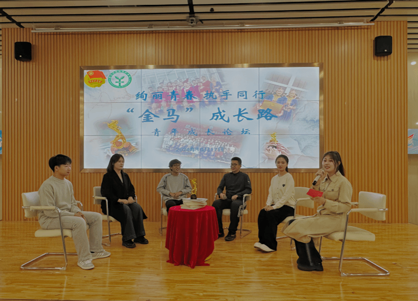 10月17日晚,三亿在创新创业公司路演大厅举行了青年成长论坛之“金马”成长路上。第36届金马演员汪鑫、吴雨轩、李思林、滕浩然、王美懿等作为分享嘉宾。本次活动由23级园艺三班陈彦儒主持。