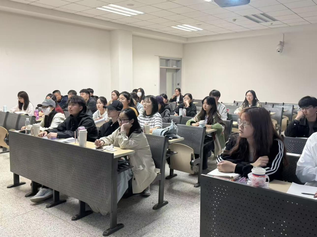 团课上,白老师带领同学们回溯历史,从共青团的创建背景、发展脉络讲起,生动阐述了共青团在不同历史时期为民族独立、国家富强所做出的卓越贡献,让同学们深刻认识到共青团始终与党同心、与人民同行的初心使命。白老师强调,共青团需不断增强引领力、组织力、服务力,号召青年学子成长为有理想、敢担当、能吃苦、肯奋斗的新时代好青年,将个人理想融入国家发展大局,勇担时代赋予的重任。接着,白老师通过结合鲜活案例,生动地展现了新时代青年直面挑战、勇担使命的风采。将“小我”融入“大我”。白灵老师激励同学们练就过硬本领,锤炼品德修为,在各自岗位上挺膺担当,以奋斗姿态在新时代建功立业。最后,白老师号召青年学子拒绝“躺平”,应保持专注、勤奋的品质,永葆奋斗初心,以实际行动在青春赛道上奋力奔跑,在实现中华民族伟大复兴的征程中绽放属于自己的光芒,以青春之力逐梦辉煌。