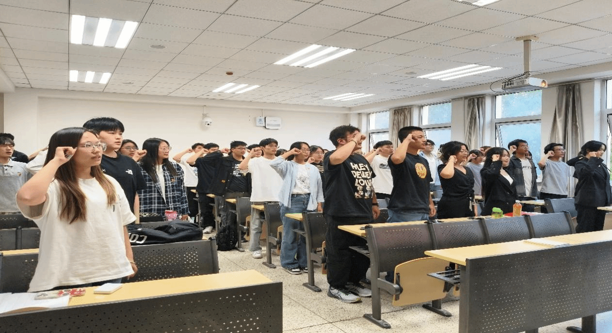 活动伊始,各班团支书为本期38名新发展团员佩戴团徽,熠熠生辉的团徽佩戴在新团员左胸,象征着新的责任与使命。