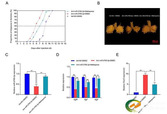 MicroRNA(miRNA)是一类长度为19~24nt的内源性单链非编码小RNA,广泛存在于各种生物体内,在转录后水平调控基因表达,在细胞分化、增殖、凋亡等多种生命活动中起着重要作用,已成为国内外研究热点。然而,miRNA在昆虫滞育过程中的调控作用却很少了解。本研究以内蒙古草原新害虫--沙葱萤叶甲为研究对象,采用生物信息学、表达谱分析和双荧光素酶实验相结合的方法,首次确定叉头转录因子FoxO是miR-2765-3p的靶基因。然后,应用基因克隆、基因沉默、miRNA过表达与敲减、药理学和形态解剖等方法,首次证实miR-2765-3p在昆虫滞育中起着重要的调控作用。