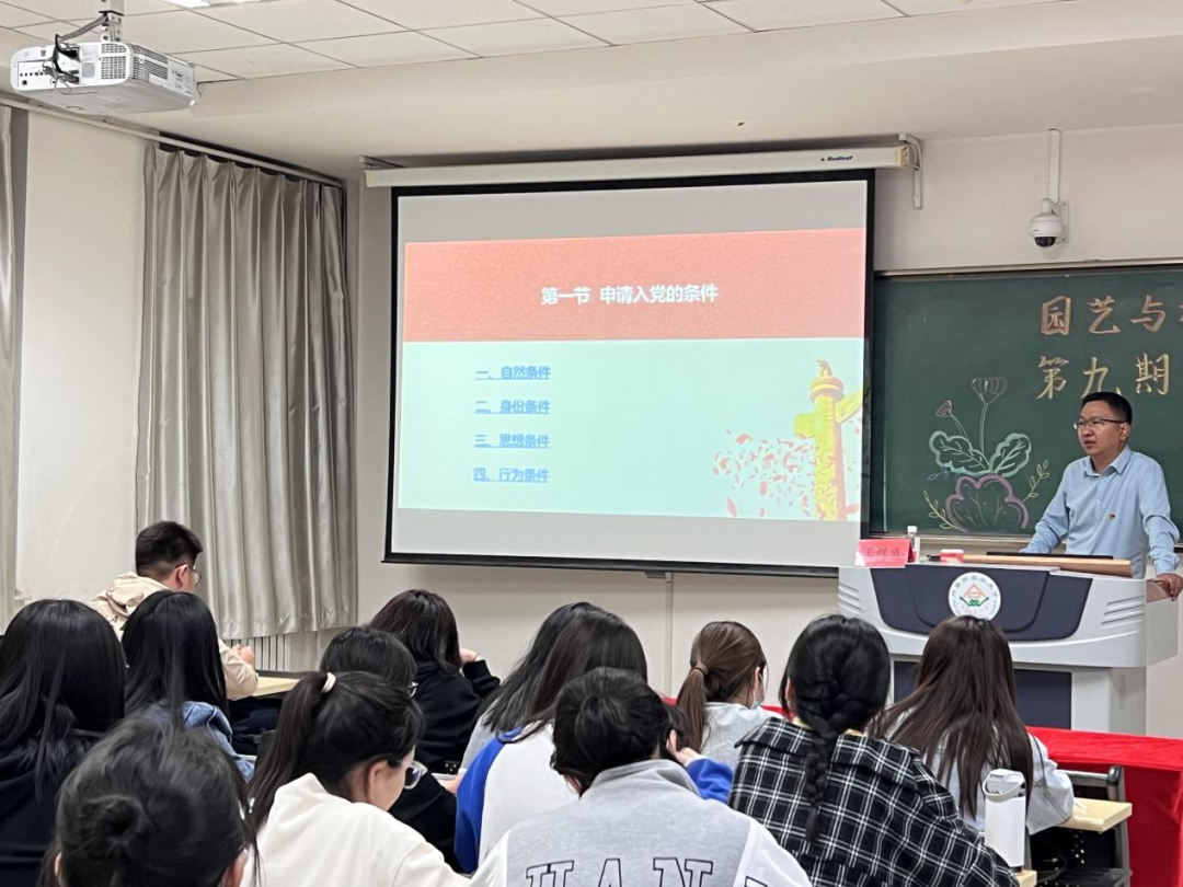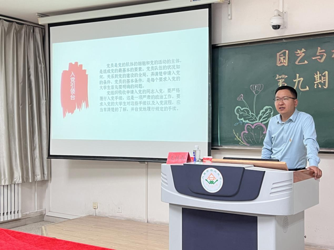 王继成老师主要从“老员工申请入党条件、入党流程、注意事项”三方面讲授。作为一名发展对象要端正入党动机,有坚定的共产主义信念,坚守党的纲领,认真贯彻执行党的决议,积极接受党组织的考验与批评,以党员的标准严格要求自己。老员工党员要做好表率,学好科学文化知识,学好共产主义的理论,在社会实践中提高自己,在为人民服务的过程中实现自己的人生价值,为实现共产主义理想努力奋斗。结合老员工的实际,老员工党员在日常学习、工作、生活中要做到:学习理论,坚定信念;牢记宗旨,勇挑重担;艰苦朴素,勤奋好学;严以律己,争做模范。会议最后,王继成老师寄语同学们要脚踏实地,志存高远,实事求是,不畏艰难,努力学好专业知识,为社会贡献自己的一份力量。