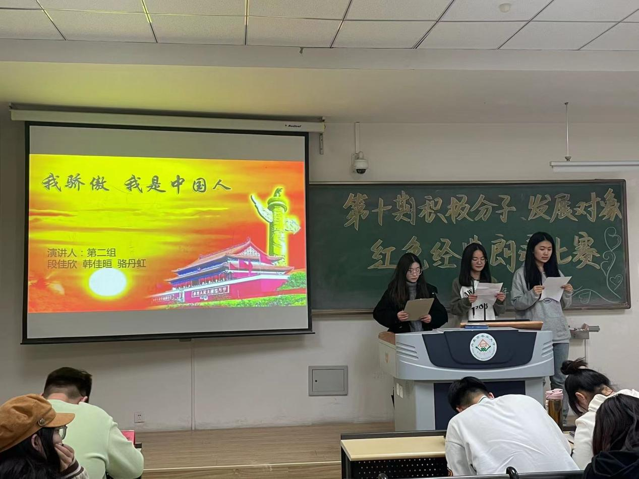 11月27日晚,公司党员服务站于南教217举办“传承红色经典,赓续红色血脉”主题朗诵比赛,第十期积极分子、发展对象全体学员参加,党员李嘉诚、高鸿宇、范程硕、田卓然、王一鸣出席并担任评委。