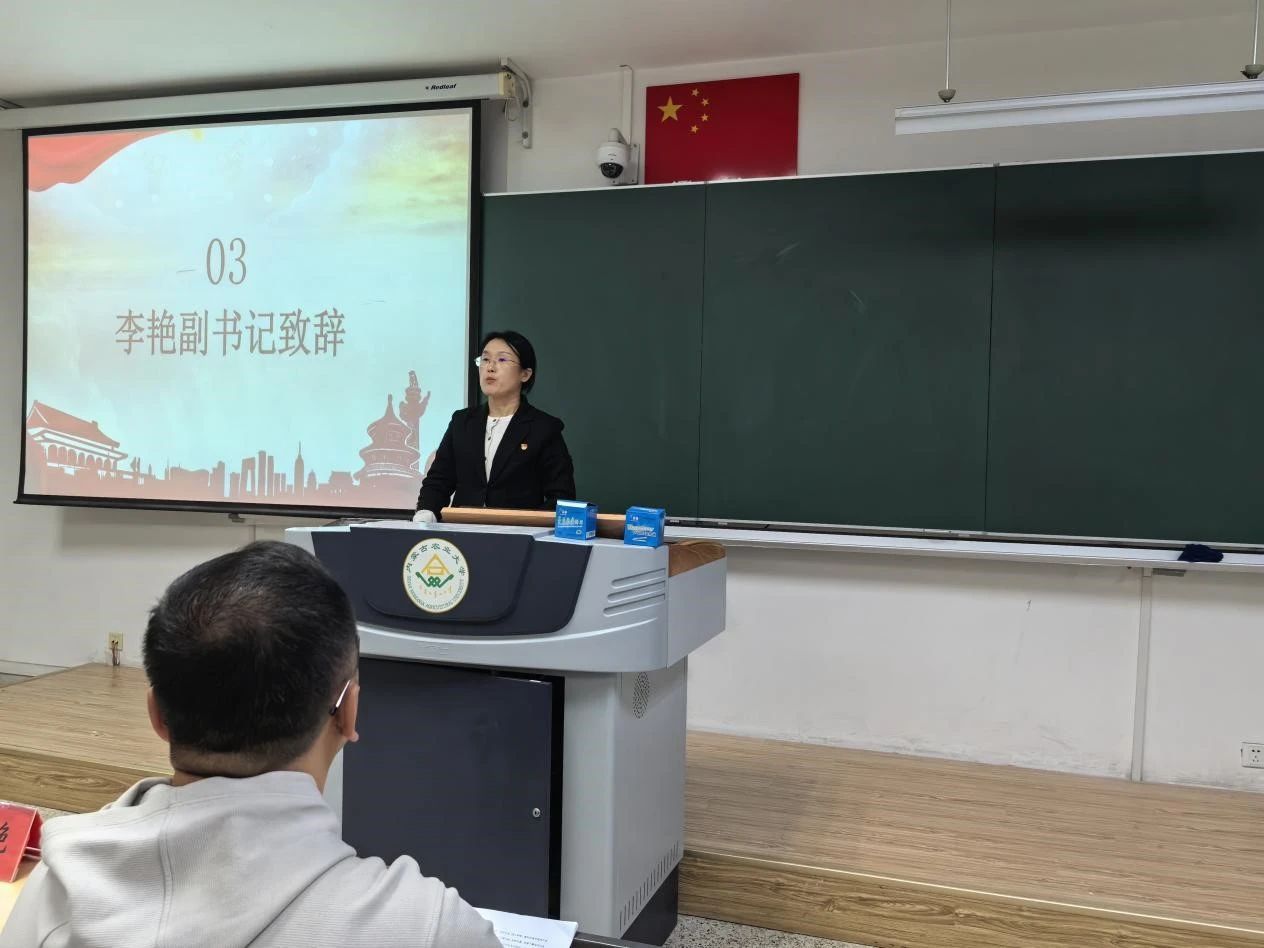 随后,李艳副书记为开班典礼致辞。她对参加培训的同学表示热烈欢迎和殷切期望,李艳副书记强调了党课学习的重要性,并希望学员们通过此次培训,能够深入理解党的伟大精神,坚定入党信念,不断提升自身素质。就“如何端正入党动机”、“党组织的培养和考察途径”以及“如何以实际行动向党组织靠拢,成为一名合格的党员”这三方面进行了阐述。她鼓励学员们不仅要认真学习理论知识,更要将所学应用到实际行动中,时刻牢记为人民服务的宗旨。