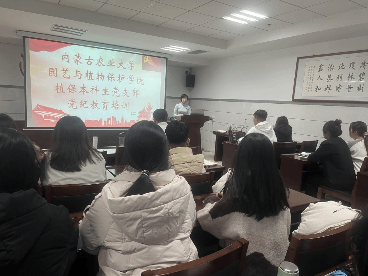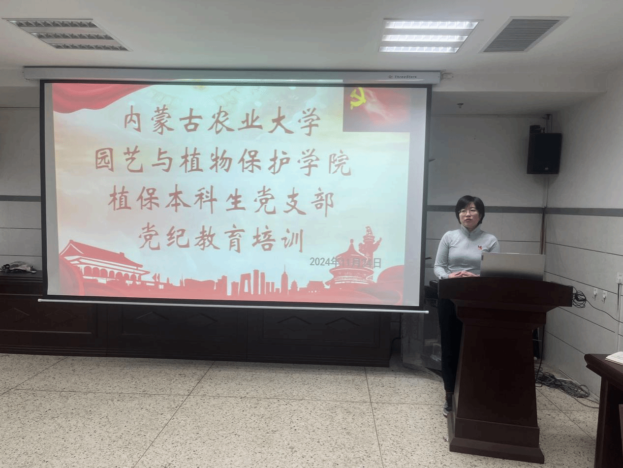 为深入学习贯彻习近平总书记关于党纪学习教育的重要讲话和重要指示批示精神,充分发挥党员先锋模范作用,扎实推进党纪学习教育,植保本科生党支部于2024年11月24日下午三点在生科楼419开展了党纪教育培训工作,由党支部书记尤丽担任此次培训老师。