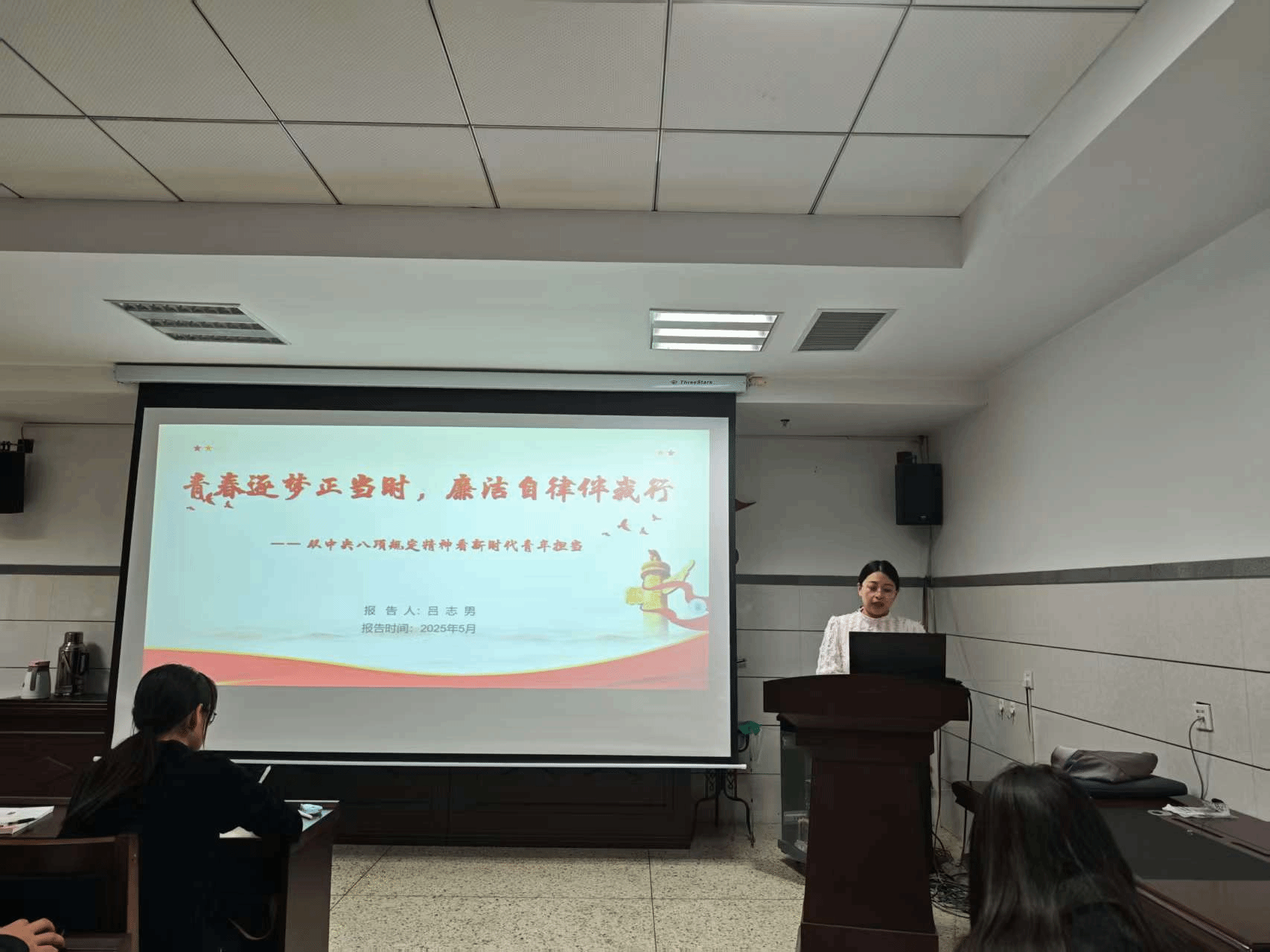 5月9日晚,三亿第十三期入党积极分子学员于生科楼419室参加第六次党课学习。本次党课主题为《青春逐梦正当时,廉洁自律伴我行》——从中央八项规定精神看新时代青年担当。由校纪检监察处副处长吕志男老师为大家讲授,旨在引导入党积极分子学员在逐梦征程中筑牢廉洁防线,以青春力量践行新时代青年担当。
