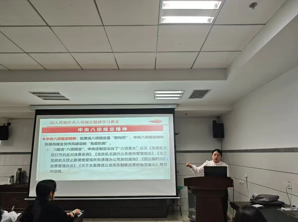 吕志男老师通过介绍中央八项规定精神,希望学员以中央八项规定精神为指引,摒弃学术不端行为,树立严谨治学态度。无论是科研实验,还是论文撰写,都秉持实事求是的原则,杜绝抄袭、造假等学术腐败现象。在校园生活中,积极倡导勤俭节约,反对铺张浪费,从节约每一滴水、每一度电做起,从珍惜每一粒粮食、每一张纸践行,让艰苦奋斗的优良传统在校园中蔚然成风。