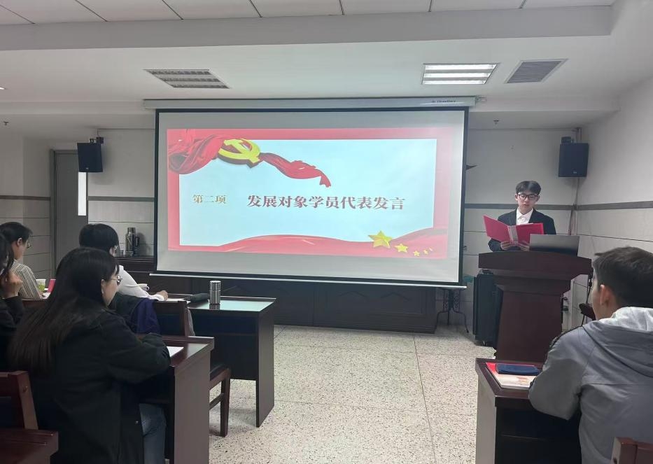 在雄壮的国歌声中,典礼正式拉开序幕。首先,发展对象代表张术博同学发表讲话,他强调作为发展对象,必须在青年员工中发挥表率作用,以“三个自觉”为准则,即自觉深入学习、深刻领会,自觉对照标准、查找差距,以及自觉承担起责任、积极行动,努力成为新时代的优秀青年,并积极争取早日加入中国共产党。