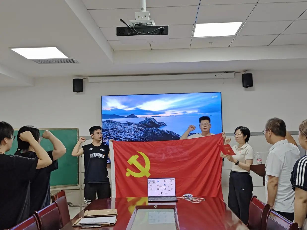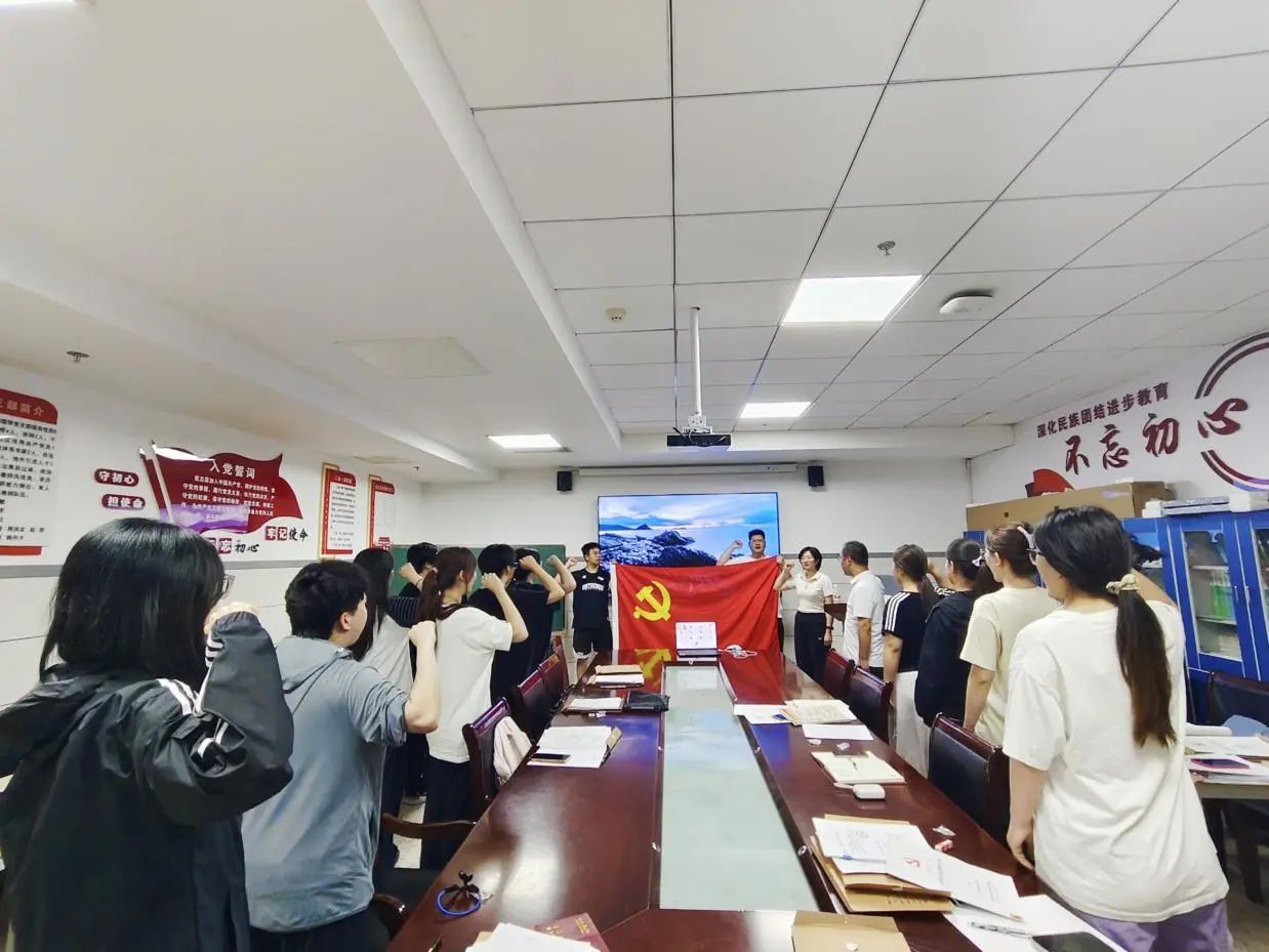 誓词的力量,不在念诵的瞬间,而在终身的践行。在尤丽老师的领誓下,全体党员庄严地举起右手,面向党旗,共同重温入党誓词,当宣誓完毕,拳头放下的那一刻,肩上的责任早已悄然加重。入党誓词不是冰冷的文字,而是滚烫的信仰契约——它要求每个党员把“宣誓一次”的仪式感,转化为“践行一生”的行动力,让初心在岁月中永不褪色,让誓言在奋斗中不断回响。