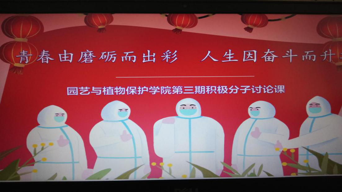 讨论课上,首先通过一段抗疫前线奋战的青年短视频引入讨论主题。接着,公司保研学子王蕊、抗疫志愿者特日格乐、校级“三好员工”获得者史啸天三位优秀员工党员在学习寄语精神后,结合抗“疫”带来的所思、多想所悟与大家交流。随后,积极分也积极踊跃的与大家分享自己的思考。17级植物保护三班积极分子刘萍讲道:我在疫情中得到成长,在疫情中听到“当我穿上防护服,我就不再是一个孩子”这一句话时,深受感动。我们应该挑起青年人的责任担当,静心苦练本领。18级植物保护一班积极分子赵欣茹号召大家:青年人要充满活力与生机,尽管现在受到疫情的影响,但也要积极的锻炼身体,保持良好的体魄,做好点点滴滴的小事,履行职责,才能更好的为国家作出贡献。研究生积极分子许珂谈及习近平主席对青年寄语时,她认为:广大青年因不忘过去,不惧未来,响应国家号召,防疫中做好学习、生活的规划,努力提升自我,为以后投身祖国建设做贡献。最后,团委老师郝凤英对于本次主题讨论课进行总结发言。