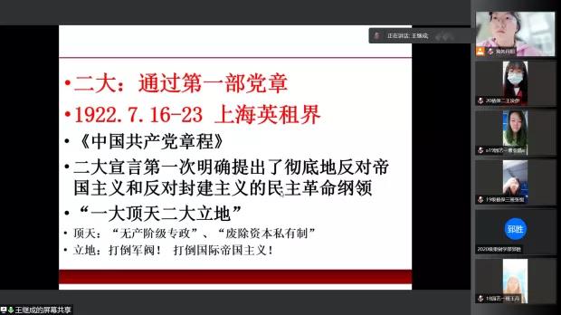党课中,王继成老师讲述了为什么要学习党史,强调"学史明理,学史增信,学史崇德,学史力行”。深入总结和运用党的一百年宝贵经验,坚持共产主义远大理想和中国特色社会主义共同理想,不忘初心、牢记使命,为党和人民事业不懈奋斗。王继成老师从1921年到2021年建党一百周年,从革命建党时期到新中国成立,从中共一大到中共十九大具体的为大家讲述了中国共产党的发展史。同时,他提到中华民族伟大复兴的中国梦,更深层次地强调了中国共产党的初心与使命。王继成老师强调本期发展对象是实现伟大复兴中国梦的筑梦人,要牢记时代使命,把初心记在心中,将责任扛在肩上。本节党课内容充实,思路清晰,课堂学习氛围良好,学习成果明显。