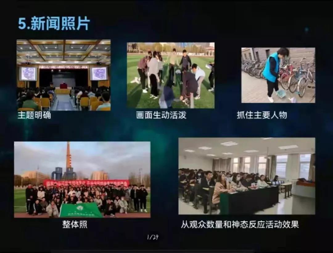 培训会上,郝老师利用ppt从格式要求、内容分析、新闻语言、注意事项、新闻图片和拍摄要求六个方面进行讲解,系统阐述了新闻写作和新闻摄影的基本要领及注意事项。她结合自身工作经历,通过引用公司的新闻稿作为实例,从正反两方面为大家详细讲解了如何进行新闻写作,指引同学们在写作的时候学会抓住活动内容的主旨要义,从而形成脉络清晰的新闻稿框架。同时,郝老师利用一些日常新闻报道中所拍摄的图片资料,使同学们更直观地理解拍照技巧,避免拍照出现误区。最后,她建议大家在平时工作、学习、生活中养成多观察、多思考的习惯,勤写勤练,日积月累,新闻稿件的写作水平就会逐步提升。