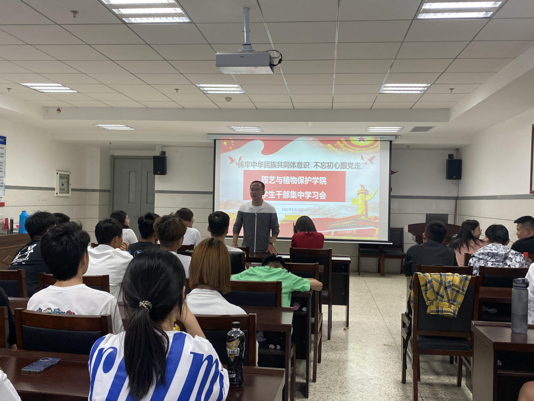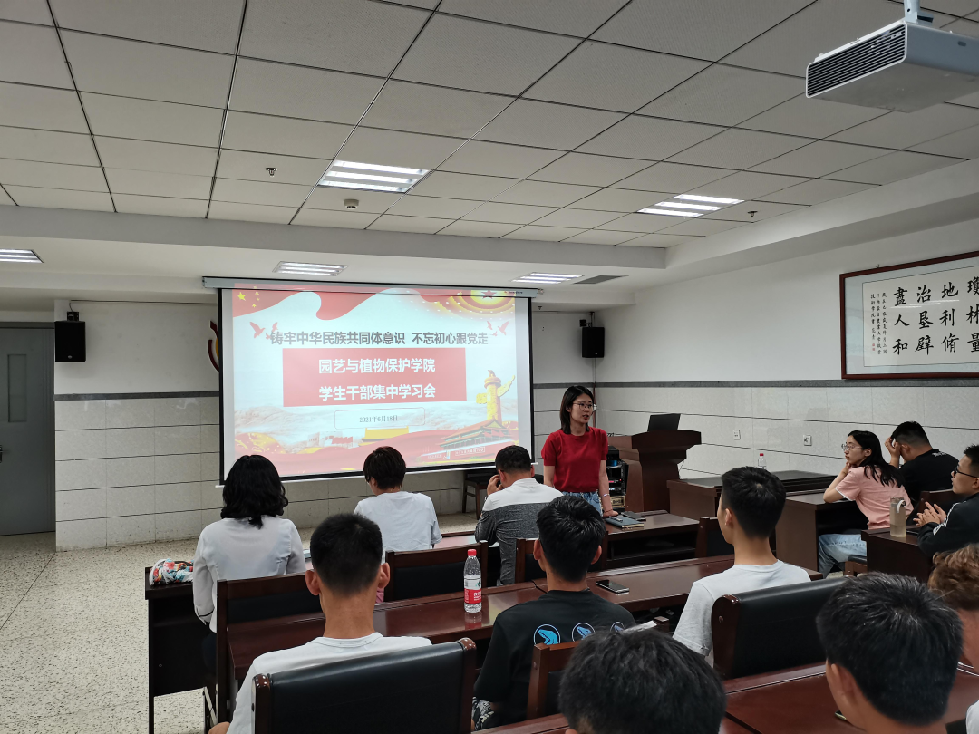 6月18日下午,公司在生科楼419召开了“铸牢中华民族共同体意识,不忘初心跟党走”主题员工干部学习会。学办老师尚飞、学办老师尤丽、公司专职辅导员王荣出席,园保院全体员工干部参加,团委老师郝凤英主持会议。