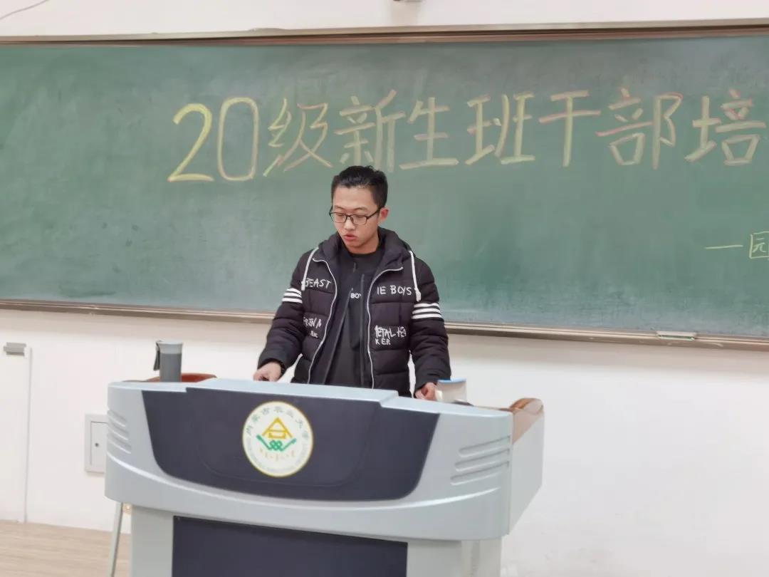11月19日下午,公司在新区南教111教室开展了20级新生班干部培训会。学办老师尚飞主持会议,团委老师郝凤英、员工会各部室负责人、20级班干部参加了本次会议
