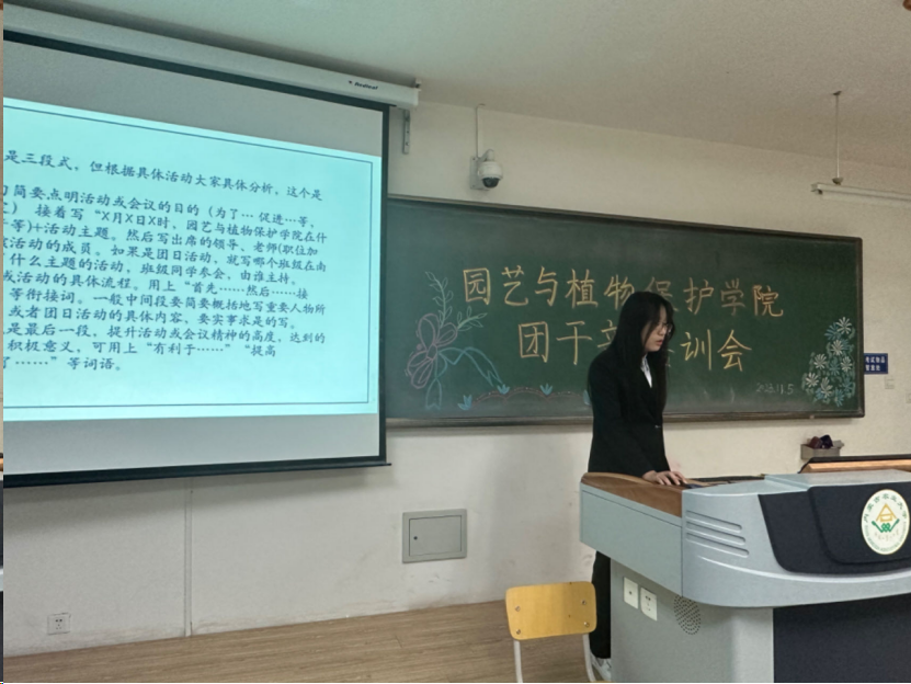 培训会上,志愿者服务管理中心主任王芝蓉详细介绍了到梦空间的重要性、设置流程。新闻中心主任高郡苑介绍了新闻稿的格式、基本思路,着重强调了拍照时的注意事项。组织部部长聂彤蕊从准备过程、开展、总结及团日竞标会等方面介绍一个优质团日活动的特点,同时她也讲解了团日活动总结书的封面、内容要求以及智慧团建的使用。宣传部部长梁凯歌讲解了青年大学习的使用,强调了青年大学习的重要性,告诉同学们不要浮于形式,要深入理解它对我们的意义。办公室主任霍艳楠为大家讲解了一些基本办公软件的使用。