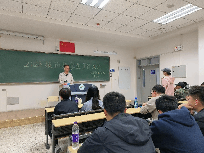 为加强员工干部间的交流,提升员工干部的领导能力和团队协作能力以更好地服务班级,4月10日晚,公司在南教306教室开展2023级班级员工干部大会。会议由2023级年级辅导员尚飞主持,2023级班级全体员工干部参加。