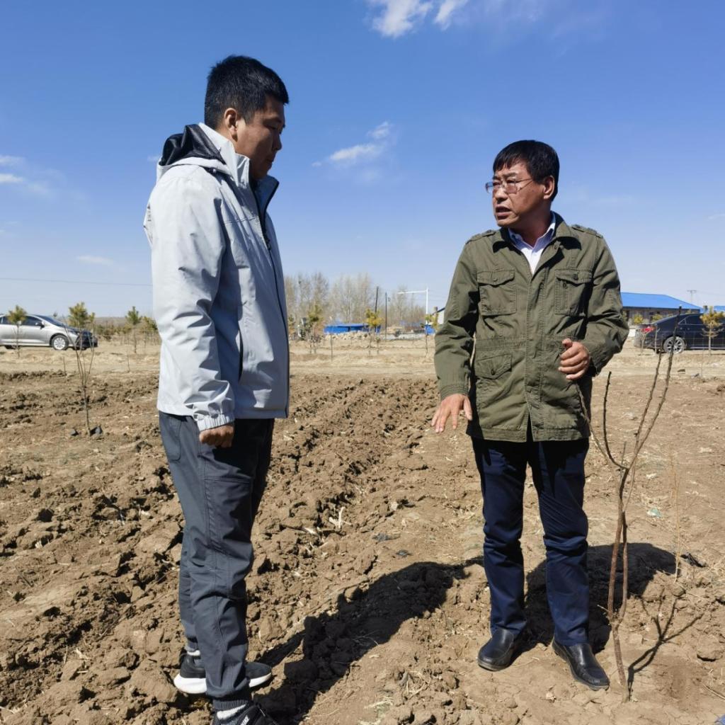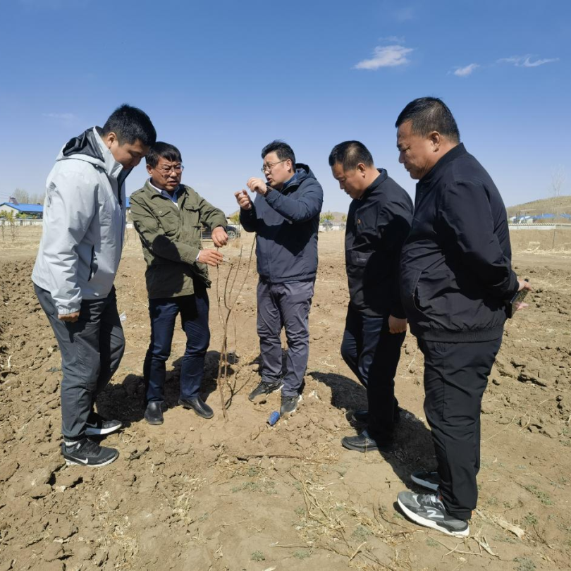 在巴日嘎斯台乡中信村,安全厅驻村第一书记塔拉带领调研小组一行参观了优质杏树品种项目基地,刘杰才副经理和杨忠仁副经理结合目前的温度、湿度等因素对杏树的生根保苗和如何提高成活率提供了技术指导。