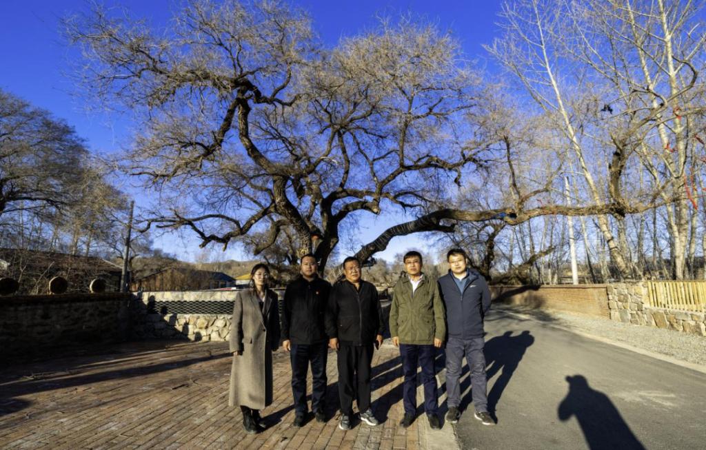 在混都冷嘎查,公司驻村第一书记闫文彬老师带领调研小组一行参观了嘎查党群服务中心,详细介绍了他的办公场所和驻村工作开展情况,在村支书老闫书记的陪同下一行人深入到农户宋大叔家中,实地考察农户大棚种植情况,还参观了嘎查电商项目和种羊基地。闫文彬老师介绍,“下一步将重点以项目带动产业发展,调动农户积极性,助推乡村全面振兴。在这个过程中,嘎查村需要大量的有志青年来充实队伍力量,希望有理想、有梦想的青年人能勇敢地投身到基层,在这片广阔的天地中实现自身价值”。最后,闫文彬老师带着调研小组一行来到海力森嘎查,“海力森”系蒙古语,意为“有榆树的地方”,自古榆树生长茂盛,这里生长着树龄500余年的榆树,海力森嘎查也在2019年获得“中国少数民族特色村寨”称号。