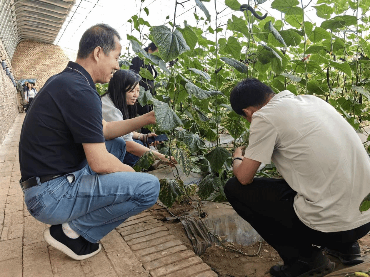 下午,周经理一行在鄂尔多斯农牧局种植业科科长苗春乐的带领下来到兴泰集团和牧牧业有限公司的温室种植大棚进行参观,公司总经理贾欢欢对公司情况及大棚种植作物等情况进行了详细介绍。贾经理表示,希望公司能为公司输送优质人才,提供更先进的技术指导,助力公司更好发展。在参观过程中,对于大棚作物出现的病菌及其他生长问题周经理一行也提出了具体的解决方案。