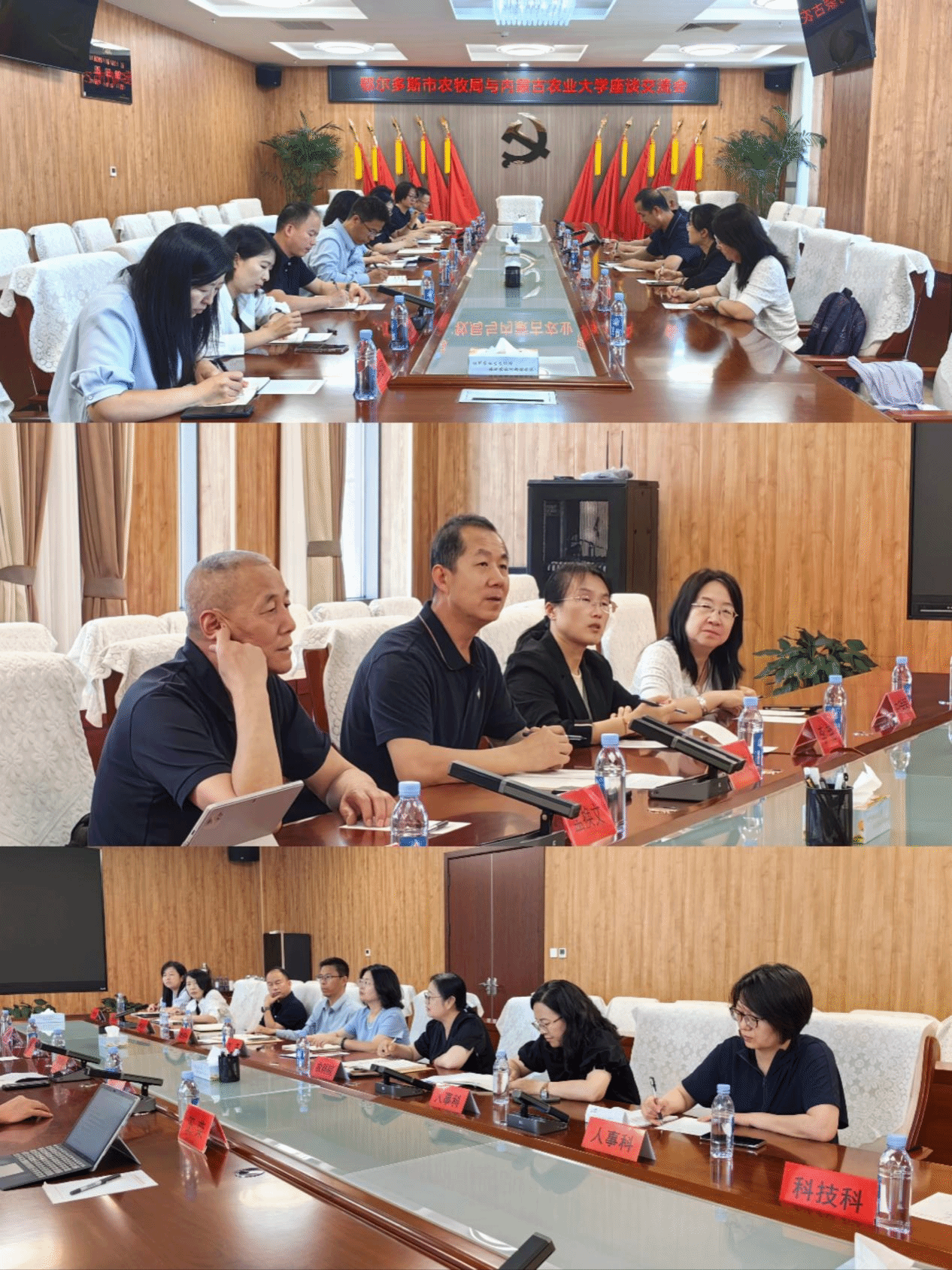 6月21日,在与鄂尔多斯农牧局座谈会上,一级调研员刘芬、农牧局各科室负责人及员工代表与公司就用人需求、农牧业发展、人才联合培养、科研项目合作等内容进行了深入交流。