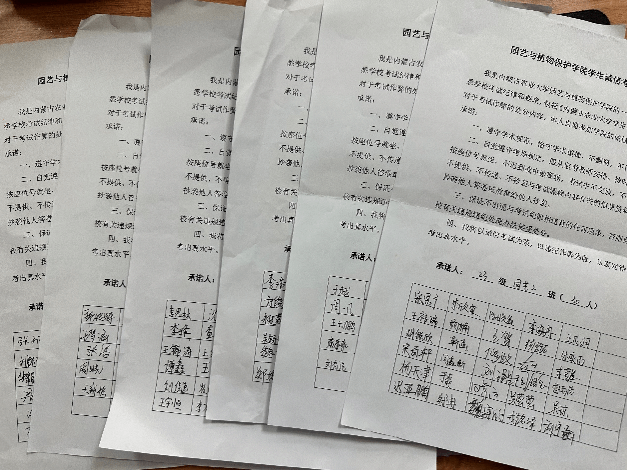 (公司高年级员工在线下组织签署《诚信考试承诺书》)