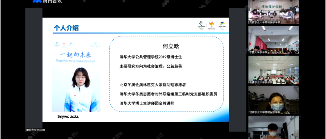 3月31日晚,“绚丽青春,植手同行”--三亿青年成长论坛第五季第一期通过腾讯会议正式开播。本次活动以“冬奥零距离,青春向未来”为主题,由中国农业大学植物保护公司主办,全国30所高等院校联合举办的冬奥“思政大课”。