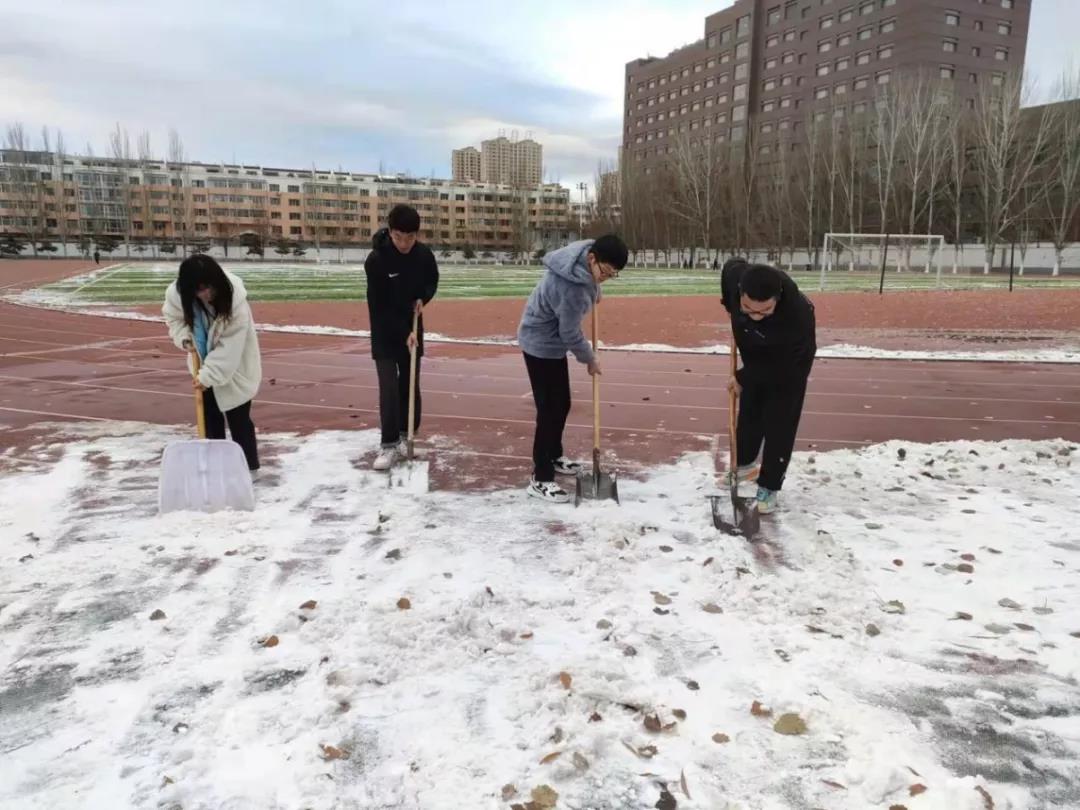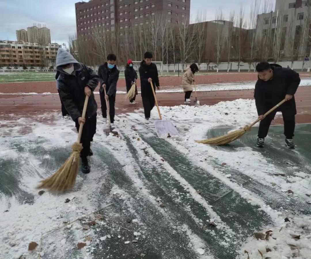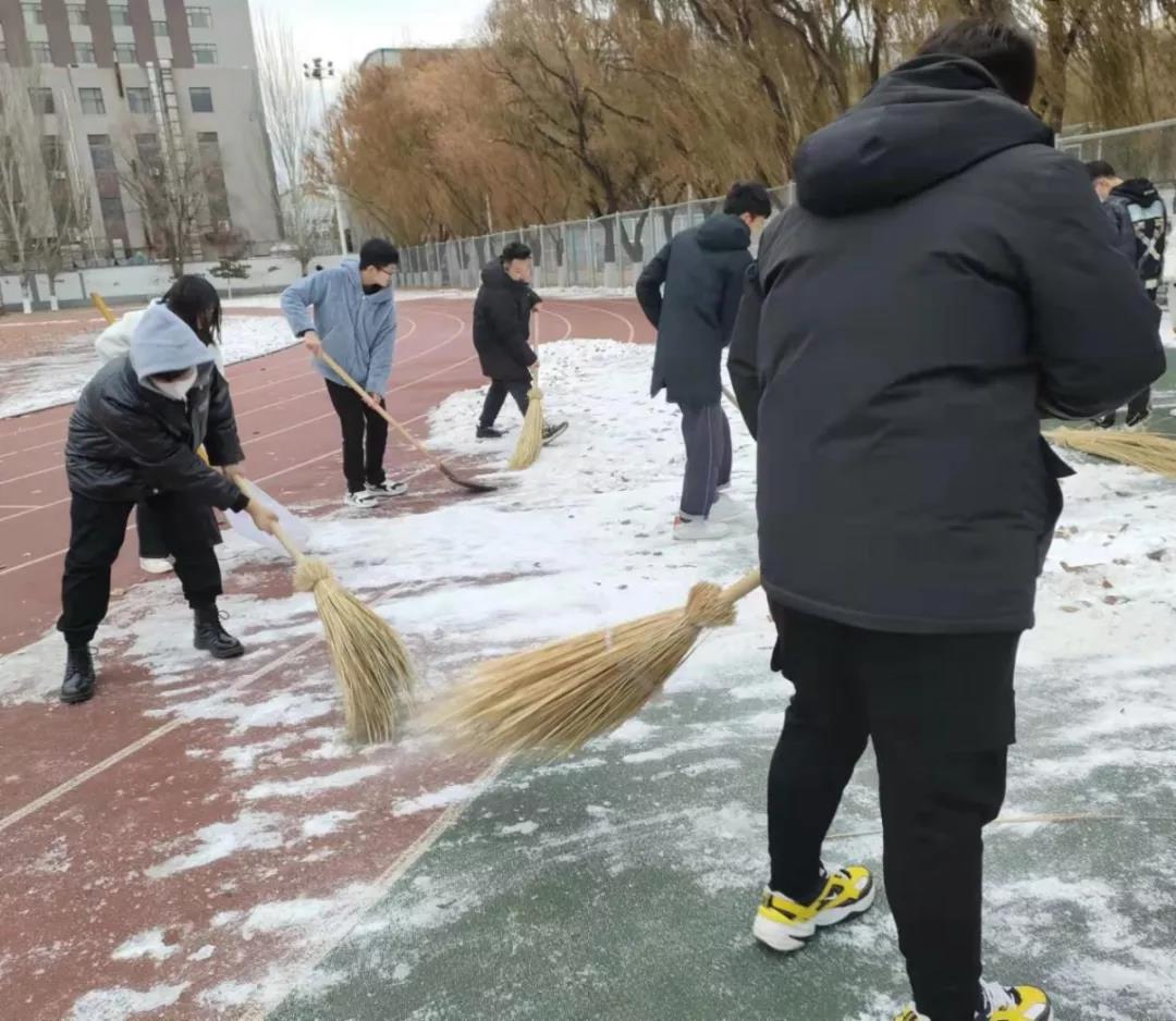 活动前期工作人员与操场保卫处取得联系,保证清扫工具到位,使得活动正常进行。活动中,刘钰婷同学进行了简单的活动介绍,进一步增强了青马班成员对此次活动的认同感。开始工作后,每位青马班成员都积极参与,热情高涨,大家不畏严寒,挥舞着铁锹、笤帚,相互配合,你铲我扫,一点点地将积雪和冰层铲起集中堆放。经过半个小时的奋战,汗水融化了冰雪,积雪很快被清理干净了。