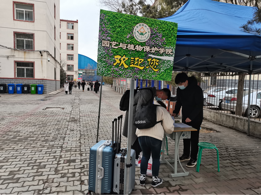 虽然近几日的呼和浩特的天气依旧很寒冷,但同学们脸上仍洋溢着开学的喜悦。同学们拿着自己的行李从设立的报到处进入。随后返校的同学们在志愿者的帮助下,填写返校登记表,测量体温并进行消毒。两天的志愿者工作,同学们顶着寒风,始终坚守在岗位,迎接着同学们的返校归来。