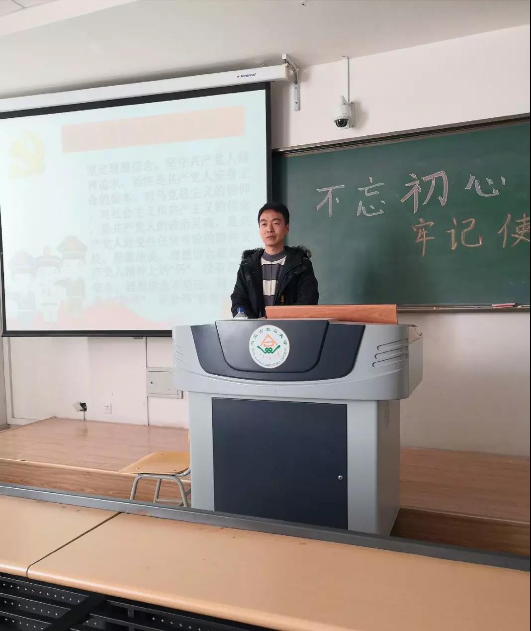 10月24日下午14:30,公司园艺一班于南教209开展了“不忘初心 牢记使命”的团日活动,旨在深入学习贯彻习近平新时代中国特色社会主义思想。班主任张磊出席了本次活动。