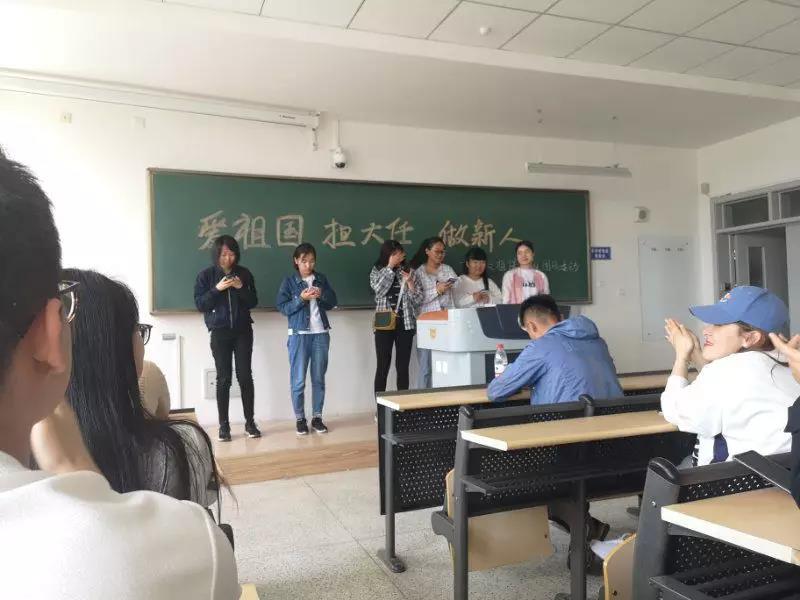 活动开始,同学们根据”爱祖国,担大任,做新人”这一主题发表了自己的看法并进行了激烈的讨论。讨论过程中同学们更加充分的认识到作为新时代青年的时代使命与责任。随后,班长组织开展了植物分类比赛和“我与桃花”照片比赛,同学们积极参与,让此次活动妙趣横生。接着,同学们以宿舍为单位进行了以“爱祖国,担大任,做新人”为主题的朗诵活动。最后,活动在庄严的国歌声中圆满结束。