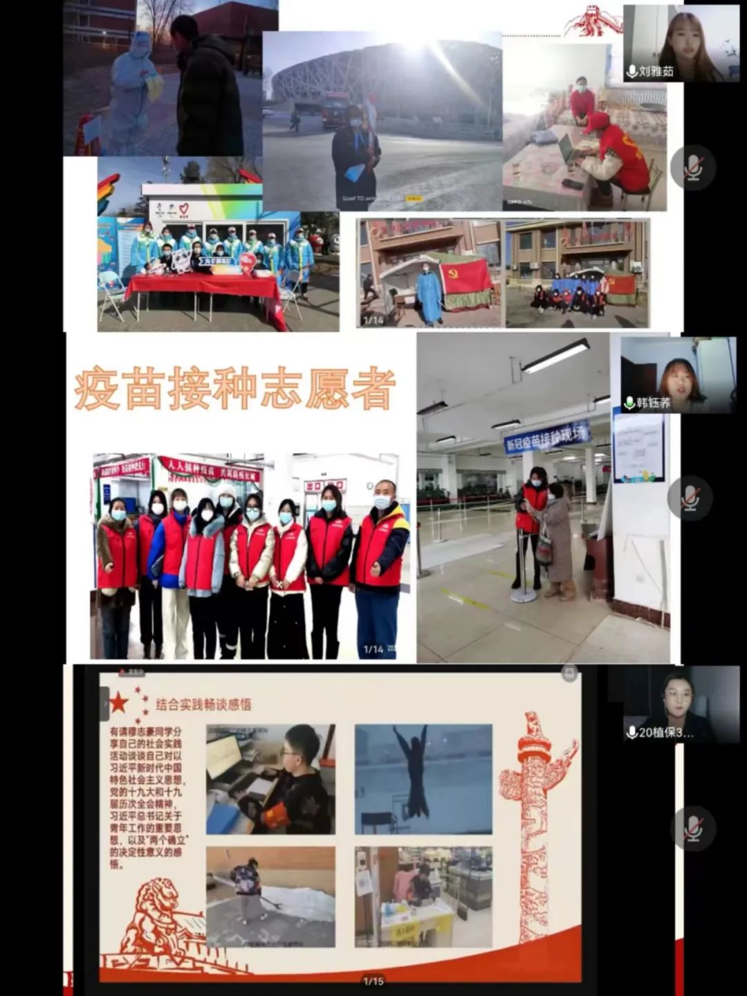 各团支部通过学习十九大报告、习近平总书记在中央民族工作会议上的重要讲话等,不断加强理论知识的学习、提升思想觉悟。同时,为了迎接即将召开的二十大,同学们查找资料,充分了解党的二十大召开的背景和意义,深刻感悟将小我融入大我,将祖国的建设和发展与个人紧密结合的意义。结合理论的学习,同学们也分享各自的假期社会实践,有的奔赴抗疫战线,成为光荣的志愿者;有的为家乡建设,助推扶贫工作以及农业种植;有的宅家抗疫打扫卫生、烹饪美食、假期vlog等。