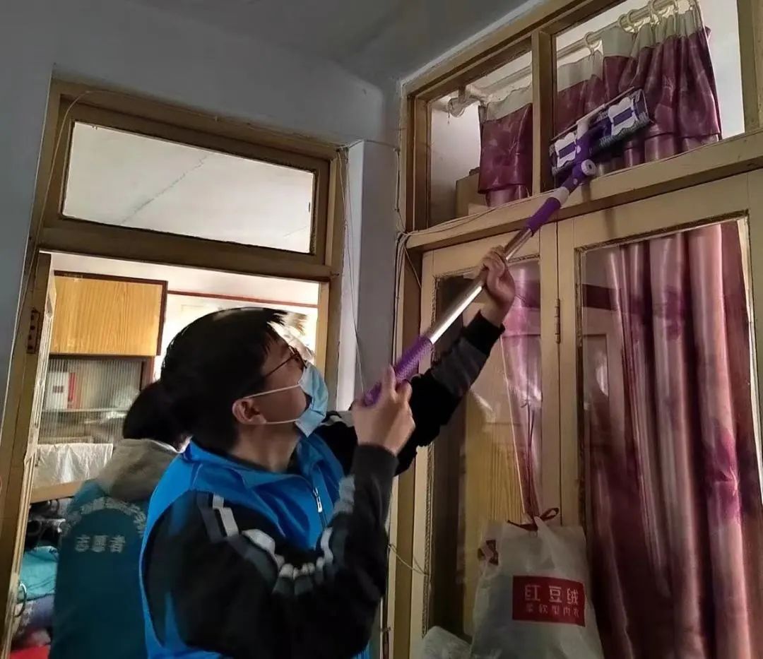 本次的志愿服务地点是叶大姐家,因2022年的疫情,大家好久没有来叶大姐家。当志愿者同学进入叶大姐的家门,她热情地问候每一位志愿者,贴心地叮嘱同学们多穿衣服不要感冒,一句句真情的问候让志愿者倍感温暖。随后,大家帮助叶大姐清洁卫生,有的同学扫地、有的同学擦玻璃,还有的同学帮着叶大姐整理书籍与物品,看到一个小小的卧室堆放着满满的书籍,同学们震惊不已,深刻感受到叶大姐知识的力量。叶大姐虽身有残疾,却有着坚强的意志和积极乐观的人生态度,作为青年的我们更应该努力学习,感恩父母,回报社会。在同学们离开叶大姐的家时,叶大姐握着大家的手表示感谢,在不舍中分别,同时也期待着下一次的见面。