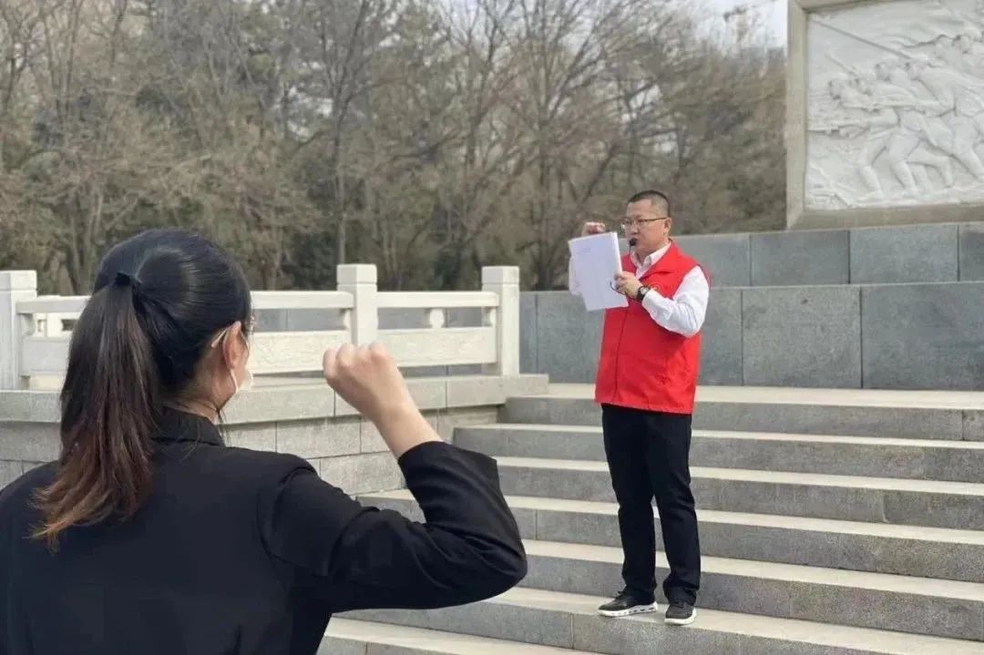 面向烈士纪念碑,在场人员分别重温入党和入团誓词,瞻仰革命墓碑,感受先烈们的革命气概和大无畏的牺牲精神,表达对先烈们的无限怀念和深深敬意。