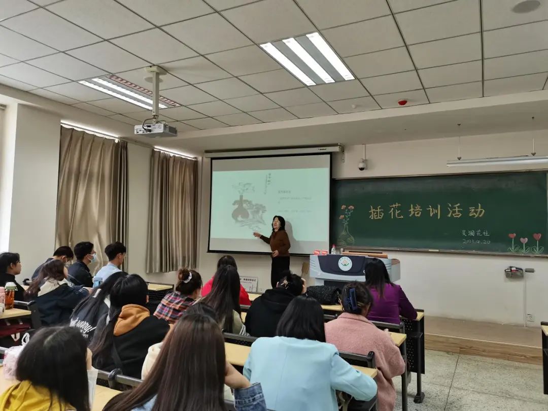 为丰富社团员工课余生活,提升个人的艺术修养,让同学们更加了解插花。4月20日下午,公司灵澜花社于新区南教206教室开展“花卉与插花艺术”讲座,此次讲座特邀请白瑞琴教授主讲,公司团委老师郝凤英以及来自7个不同公司的灵澜花社社员共计70余人参加。