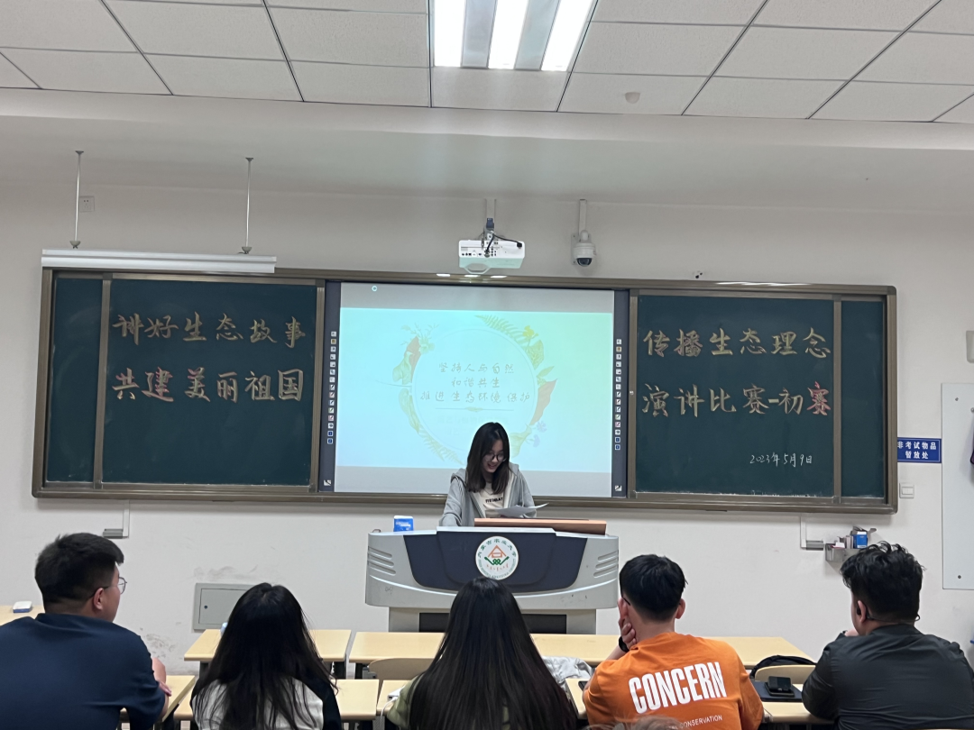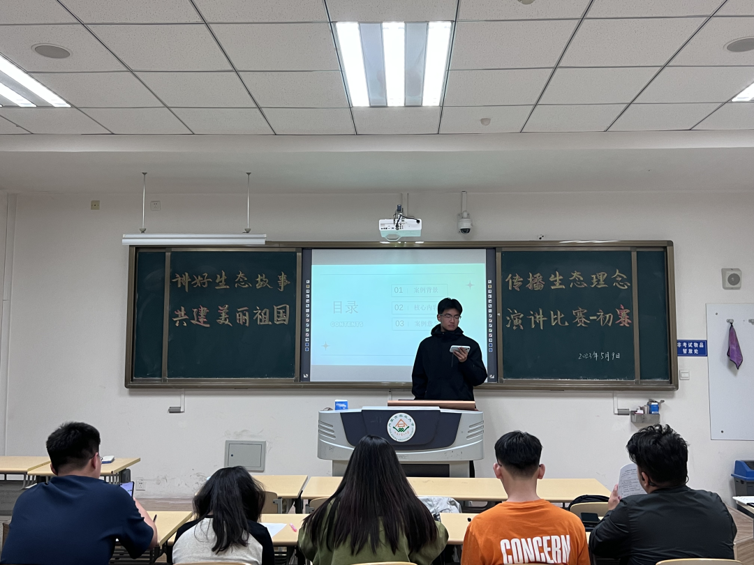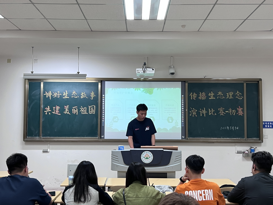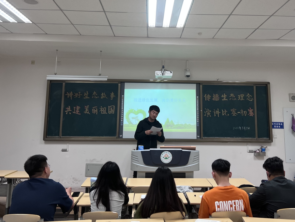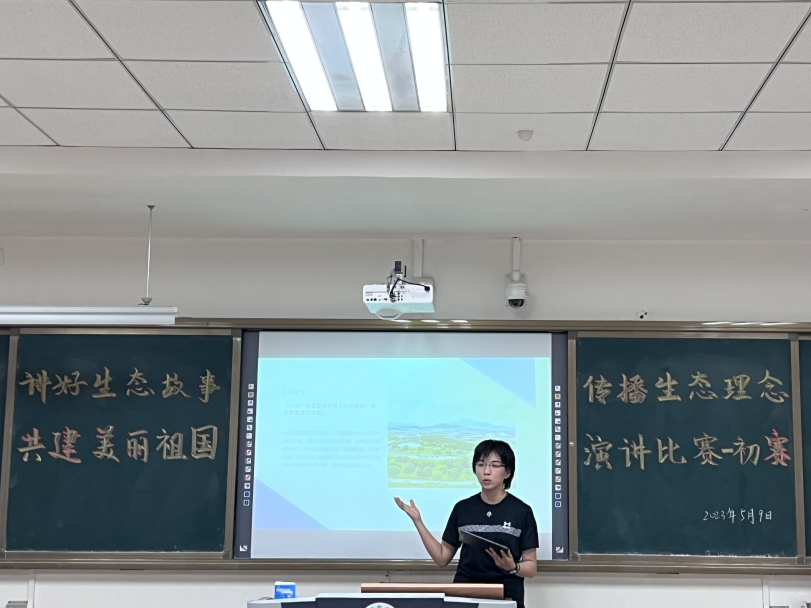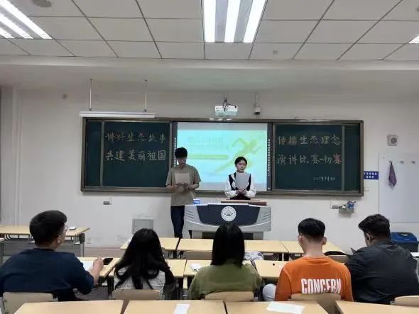主持人宣读比赛评分标准,各参赛选手按照抽签顺序依次上台进行演讲比赛。比赛过程中,各位选手结合PPT,图文并茂,条理清晰,通过讲述具体事例,从不同角度列举了生活中破坏环境和不文明的举止对生态环境产生的破坏,倡导同学们要有“传播生态理念”的坚定信念,以实际行动践行绿色低碳、文明健康的生活方式。