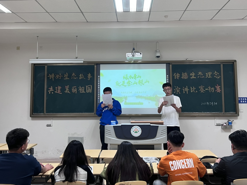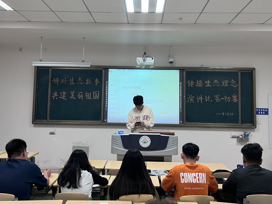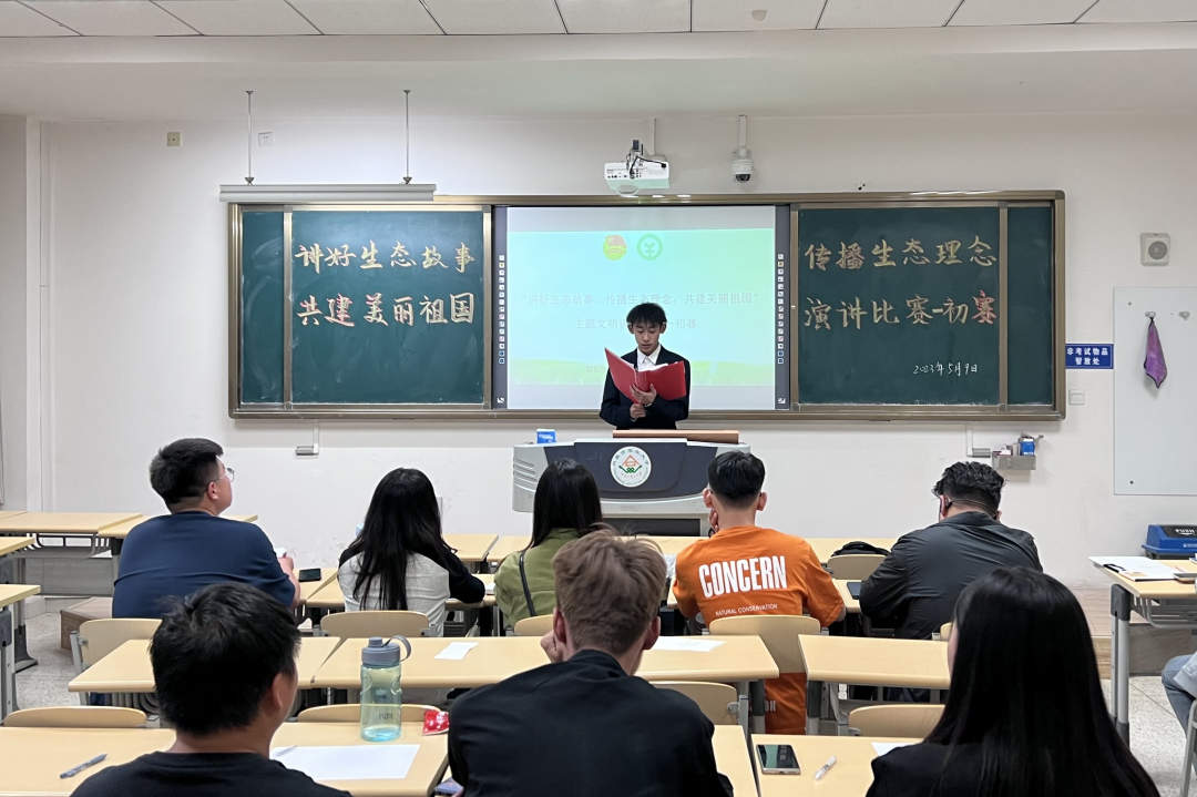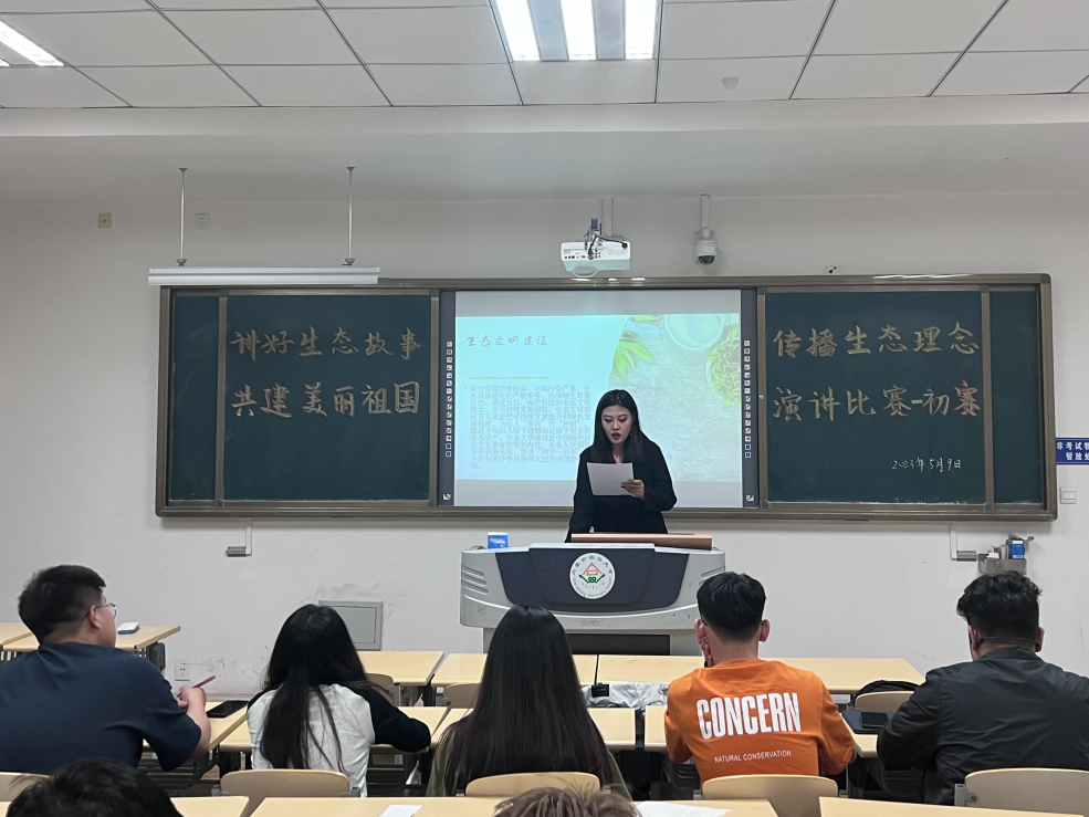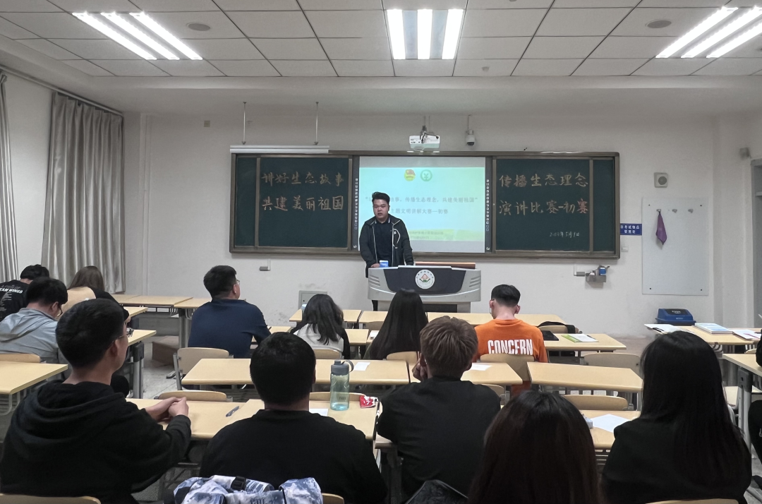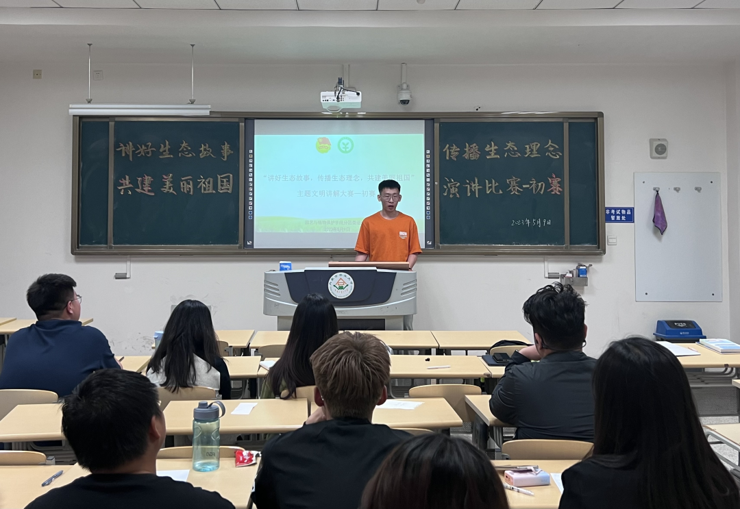 主持人宣读比赛评分标准,各参赛选手按照抽签顺序依次上台进行演讲比赛。比赛过程中,各位选手结合PPT,图文并茂,条理清晰,通过讲述具体事例,从不同角度列举了生活中破坏环境和不文明的举止对生态环境产生的破坏,倡导同学们要有“传播生态理念”的坚定信念,以实际行动践行绿色低碳、文明健康的生活方式。