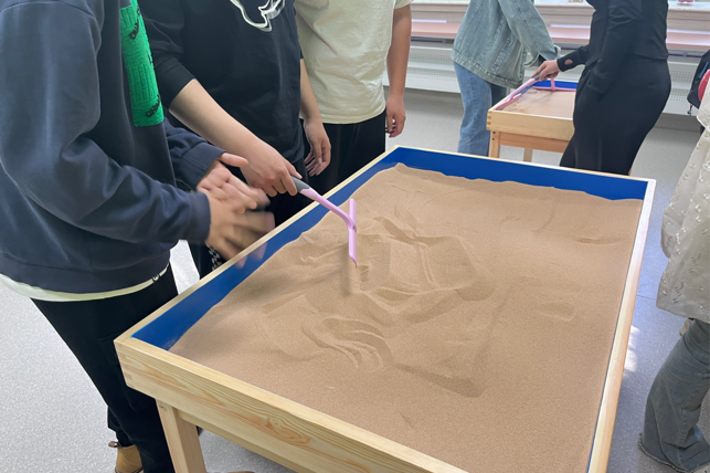 在这里,同学们可以自由选择工具,按照自己的意愿,创造出属于自己的理想世界。对于沙盘作品,老师们还会进行分析指导,聆听大家的心灵故事,帮助大家拨开迷雾,与真实的自己相遇。
