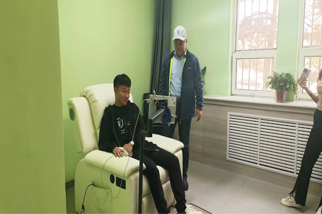 这里有专业的设备——音乐放松椅,利用音乐声波的频率和声压引起心理上的反应,有助于消除紧张、焦虑、忧郁、恐惧等不良心理状态,提高应激能力。