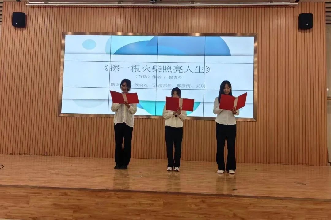 参赛选手们在比赛前做了充足准备,同学们精神饱满,声情并茂,时而慷慨激昂,时而深情款款,对祖国的敬意、对青春的倾诉、对未来的憧憬表现的淋漓尽致,感人肺腑。22植保一班的诵读作品《典籍里的中国》第二期《天工开物》,通过一粒种子,相隔三百余年的宋应星与袁隆平共同编织了一场属于科学家的共同梦想:求真务实,造福人民。21植保一班的诵读作品《诗与江南》,在悠扬的琵琶歌声中,江南的画卷徐徐展开,融合了江南的隽美与柔情,展现出江南的悠然与沉静。22设农二班诵读作品《青春》,将爱国与救国高度统一,指出中国正处于黑暗与黎明之交,鼓励青年为建设蓬勃朝气的国家而奋斗!22级设农一班诵读作品《唐诗里的中国》,将对祖国的满腔热爱融入其中,展现着当代学子对中华优秀传统文化的传承之心。